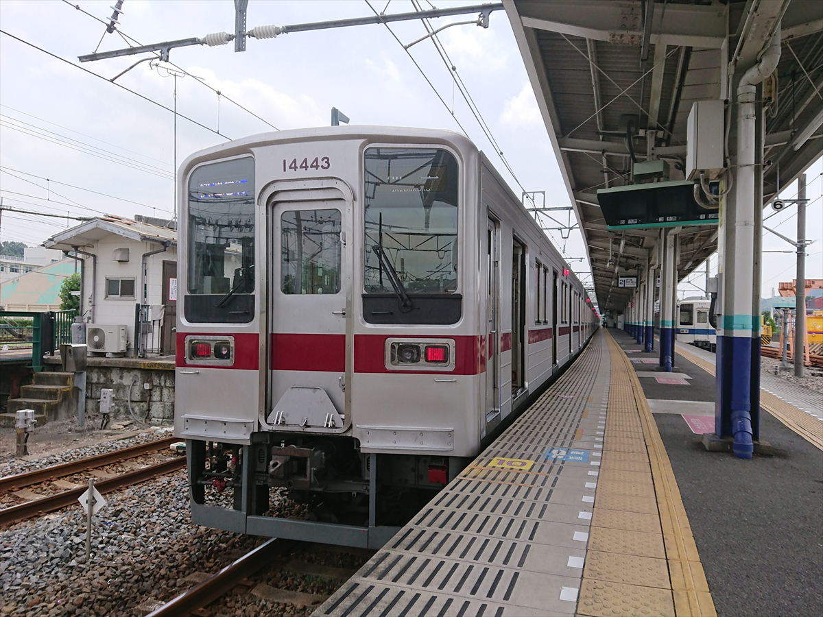 ▲東武東上線・小川町駅に停車中の10000系電車。
