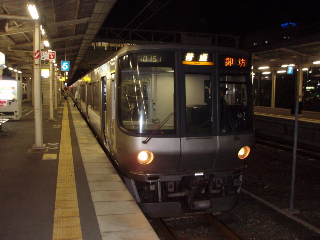 223系普通御坊行き。和歌山18時59分発の列車に充当されています。