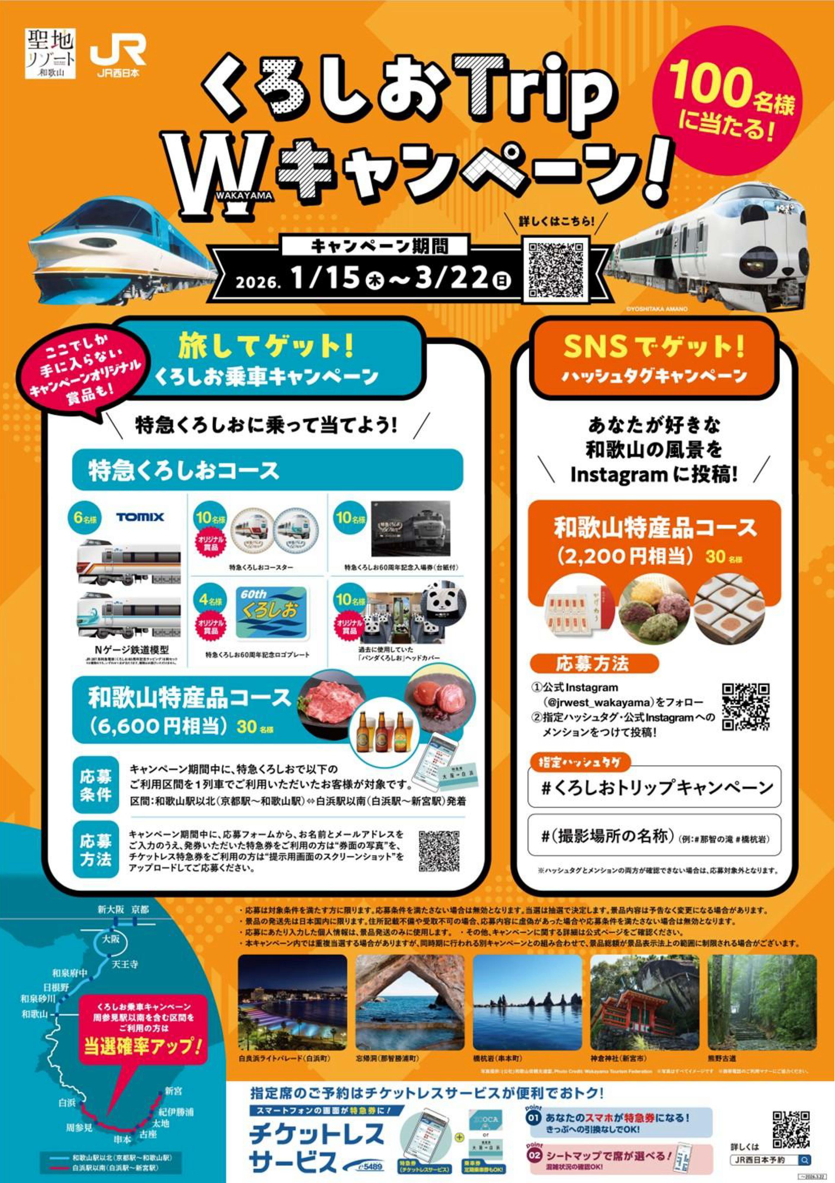 特急「くろしお」利用者と、SNS(Instagram)投稿者を対象に、抽選で総勢100名に景品が当選