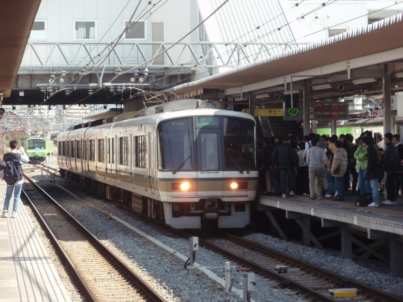 予想通り、ホームにはたくさんの同業者がカメラを構えていました。勿論、目当てはおおさか東線の車両。