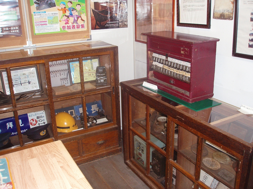駅改札口に展示されていたもの。過去に使用されていた閉塞装置、金庫など。