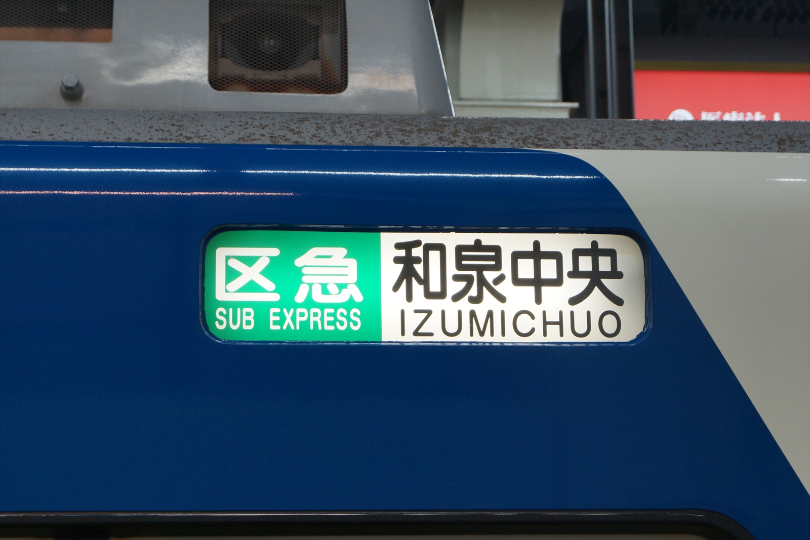 特急車両の「泉北 和泉中央」の方向幕も新鮮です。