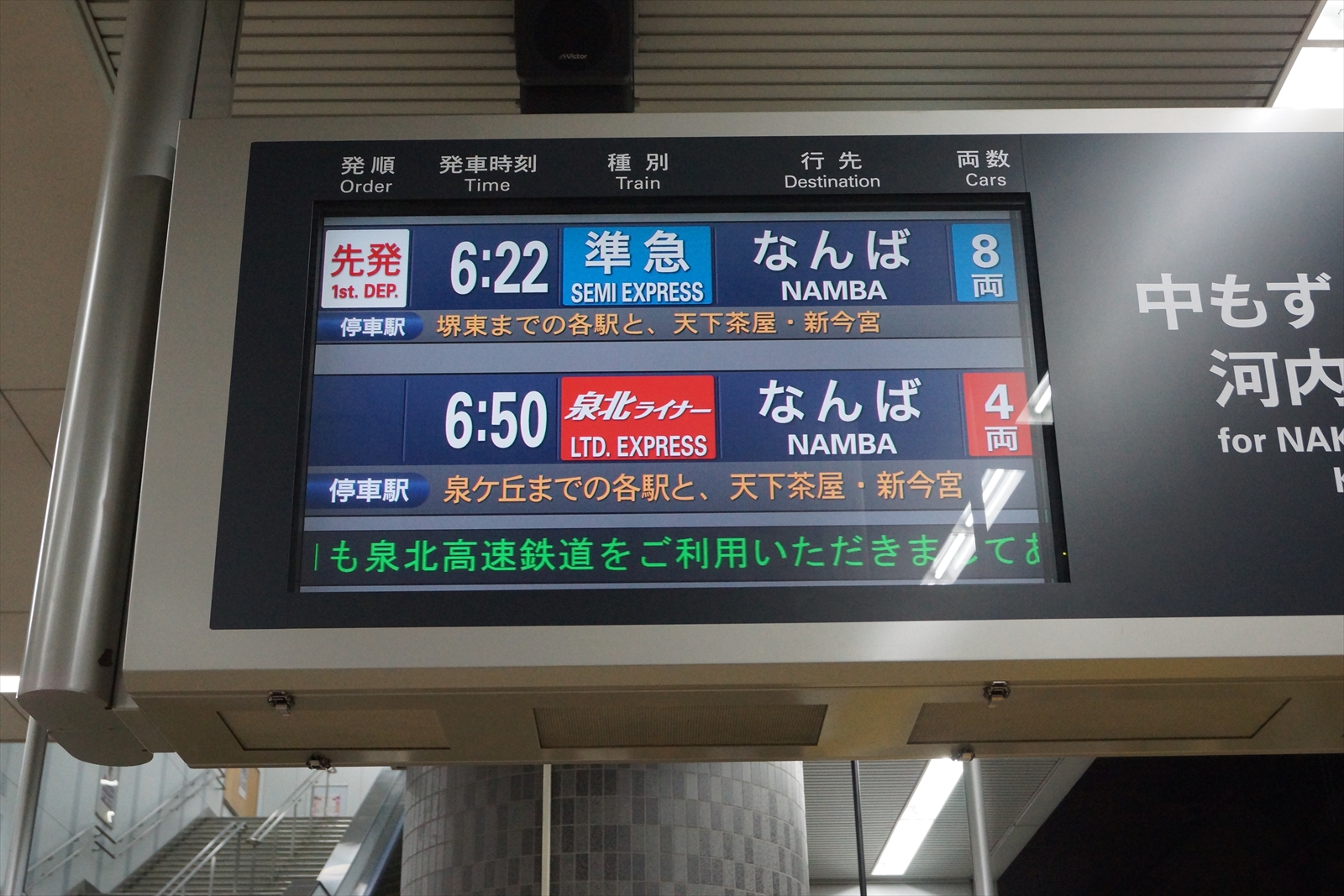さて、今回のダイヤ改正ではまた泉北線方面への区間急行が平日・土休日終日運転されることとなりましたが、その様子もチェックしてみることにしました。