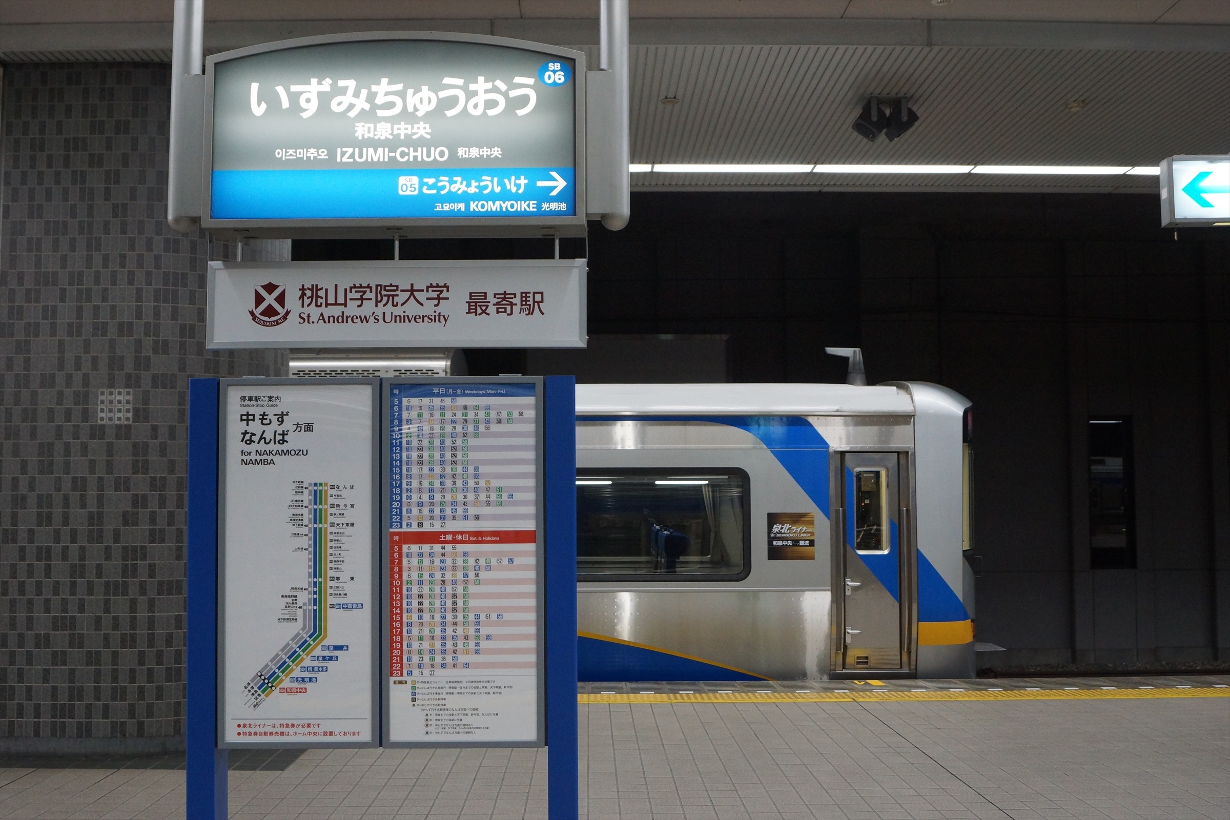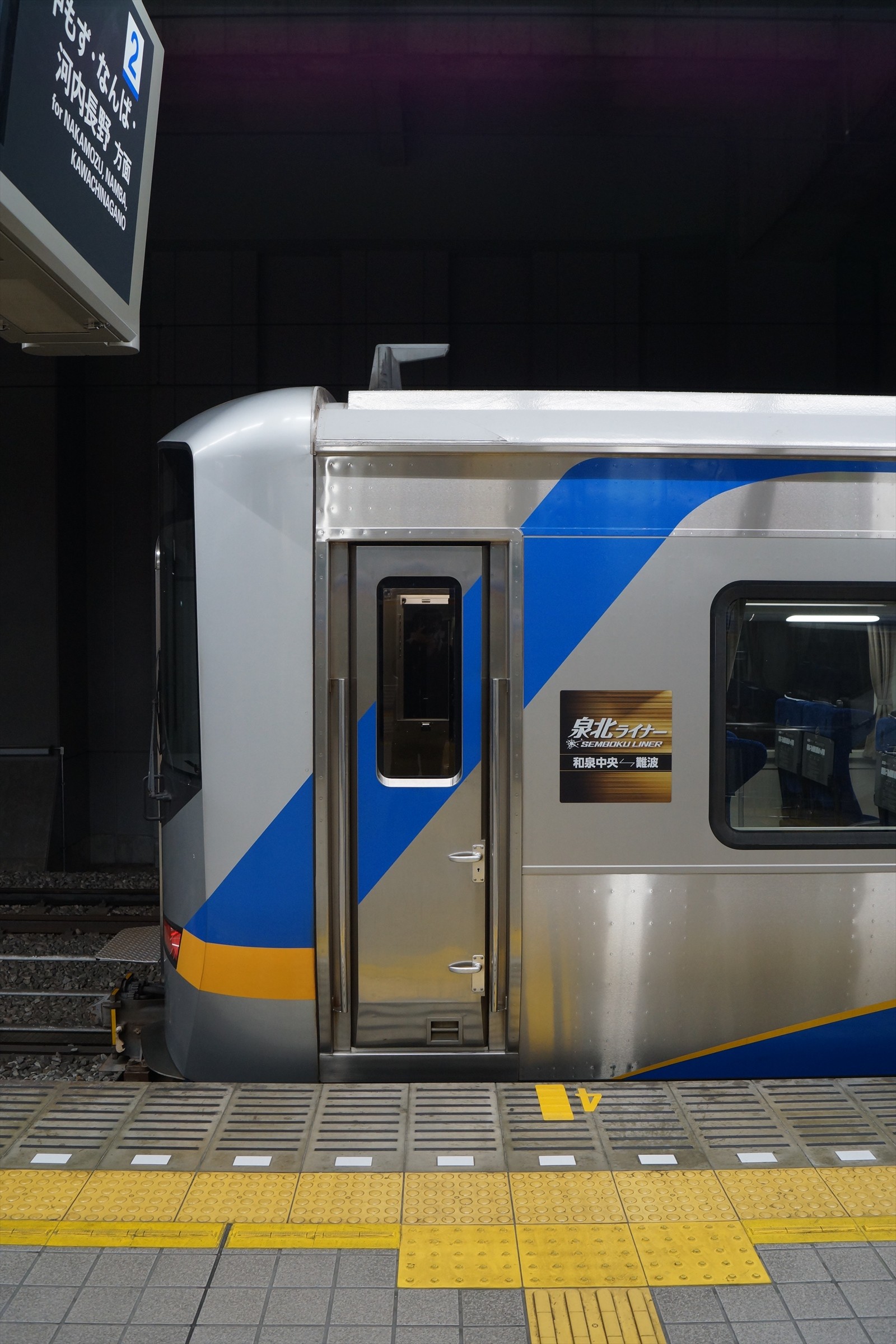 ホームに降り立つと、丁度12000系「泉北ライナー」が入線していました。