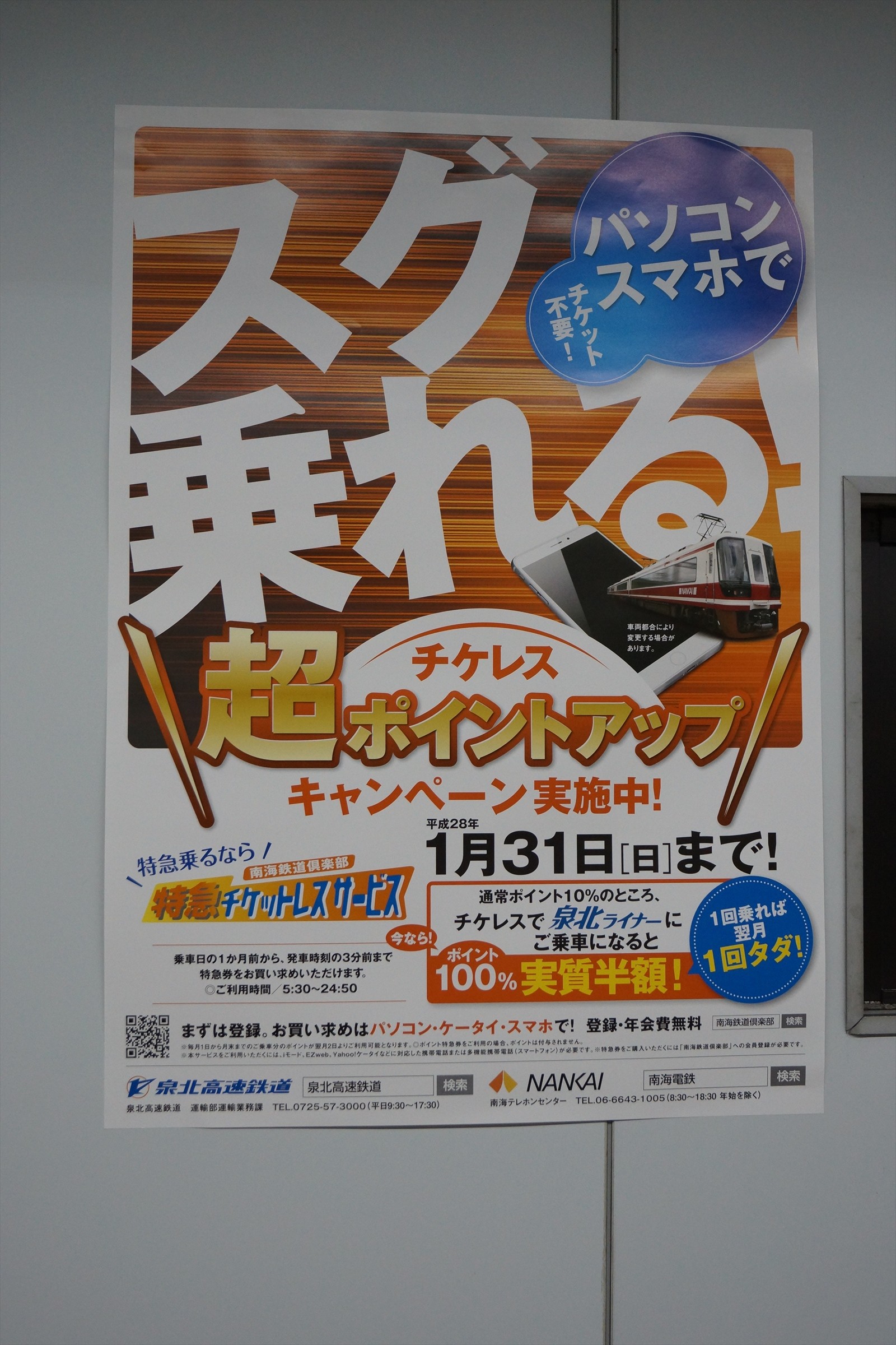 駅構内の広告には、新たに「スグ乗れる」チケットレスキャンペーンのポスターが貼っていました。