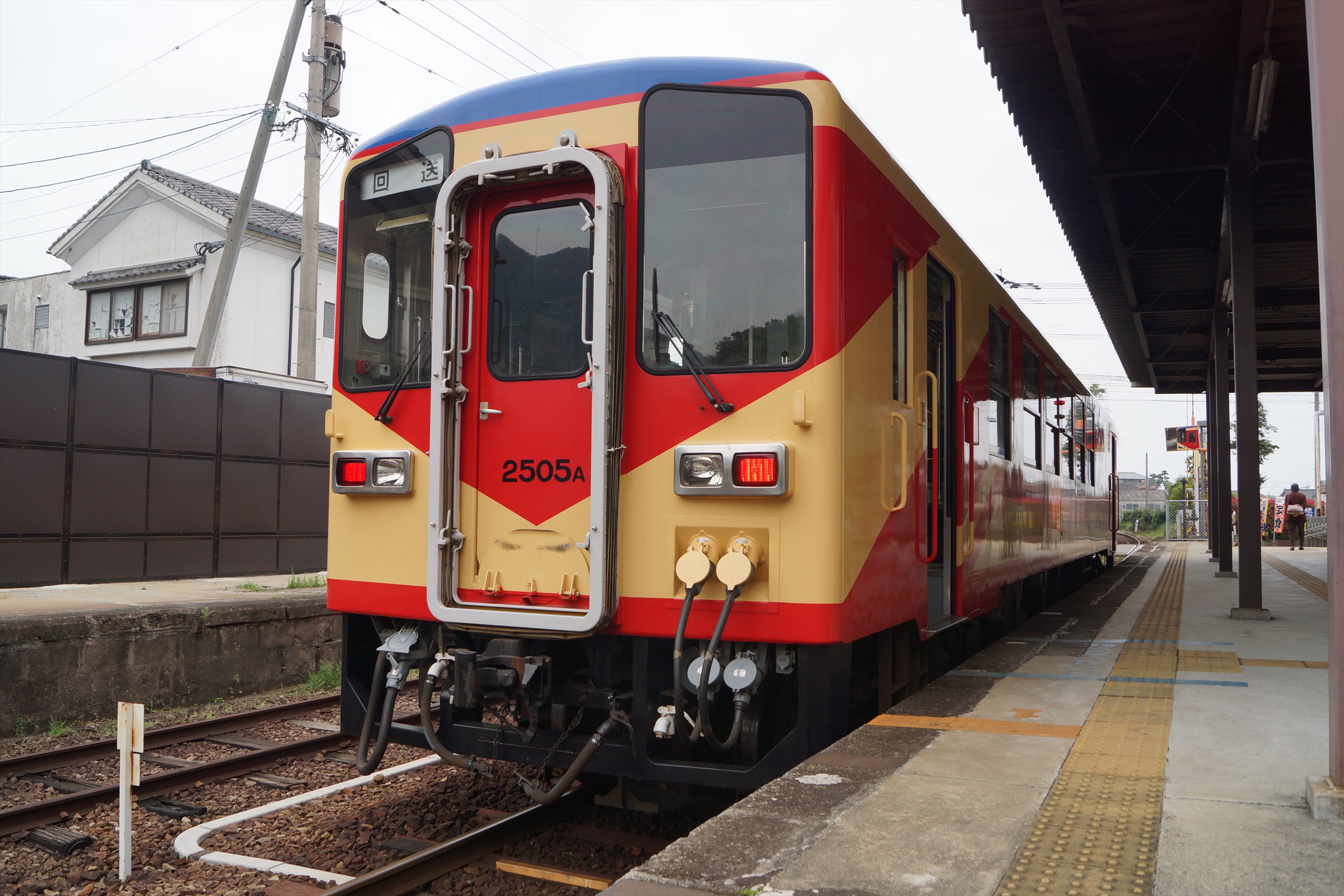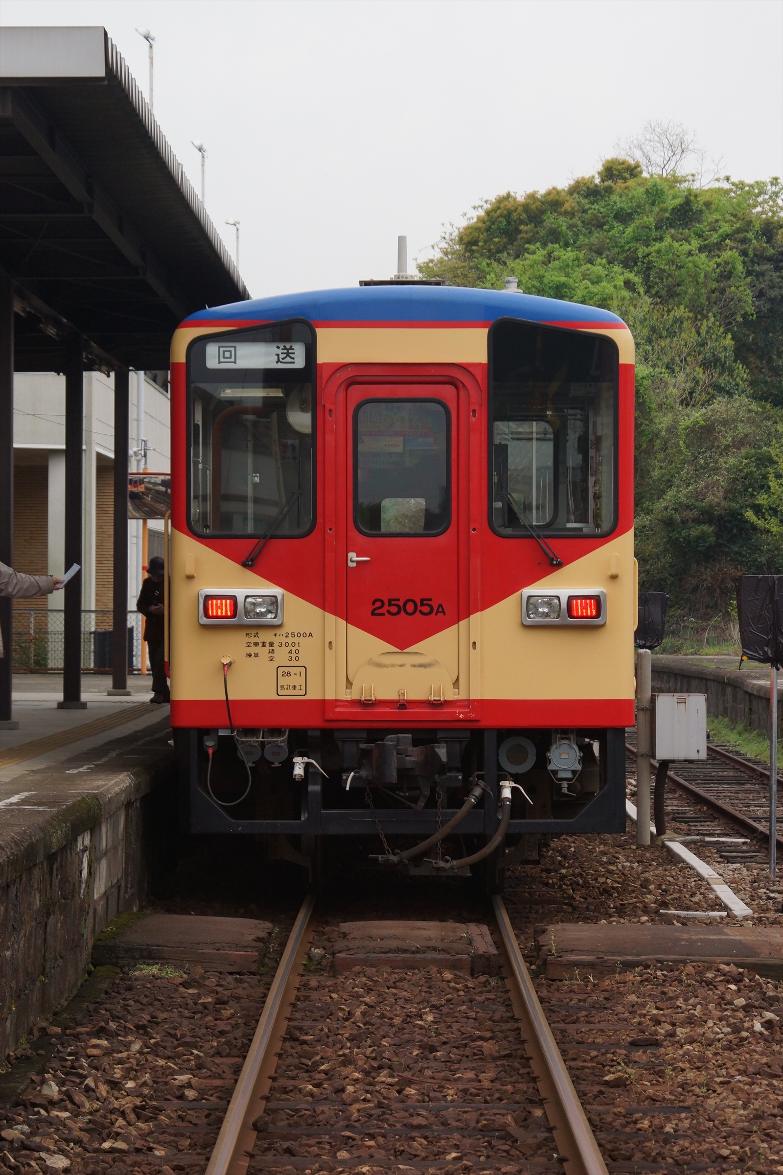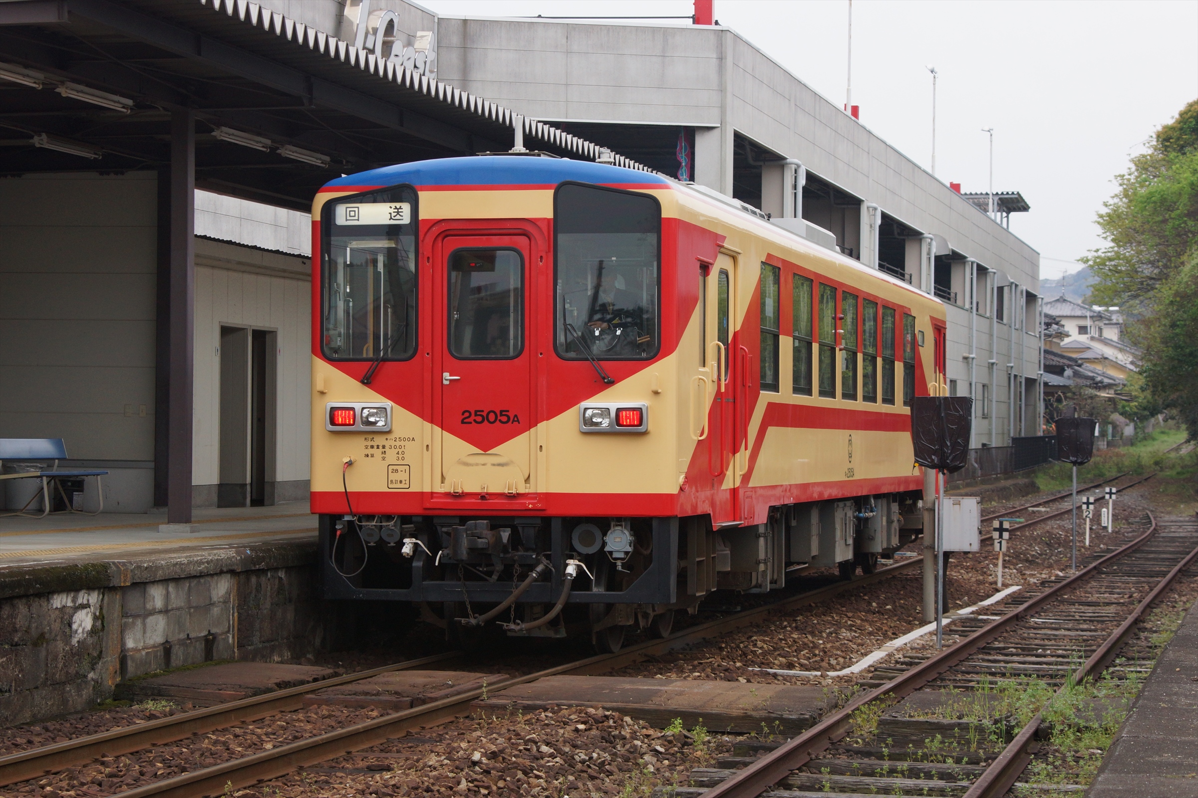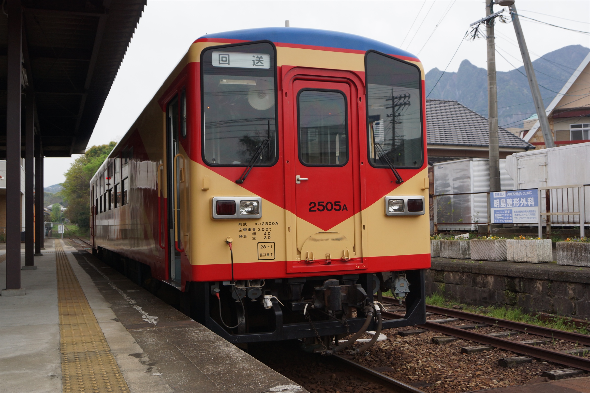 諫早方から赤パンツ塗装のキハ2500A形が入線してきましたが、この列車は下り列車で島原外港で到着した後、回送列車となることから、期せずして、方向幕が回っているシーンを記録することができました。