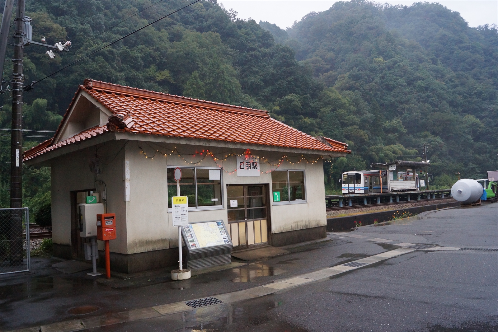 停車時間があるので、口羽駅の周辺を見にいこうと思うのですが、雨がかなり降ってきたので、駅の周辺を眺めてみることにします。