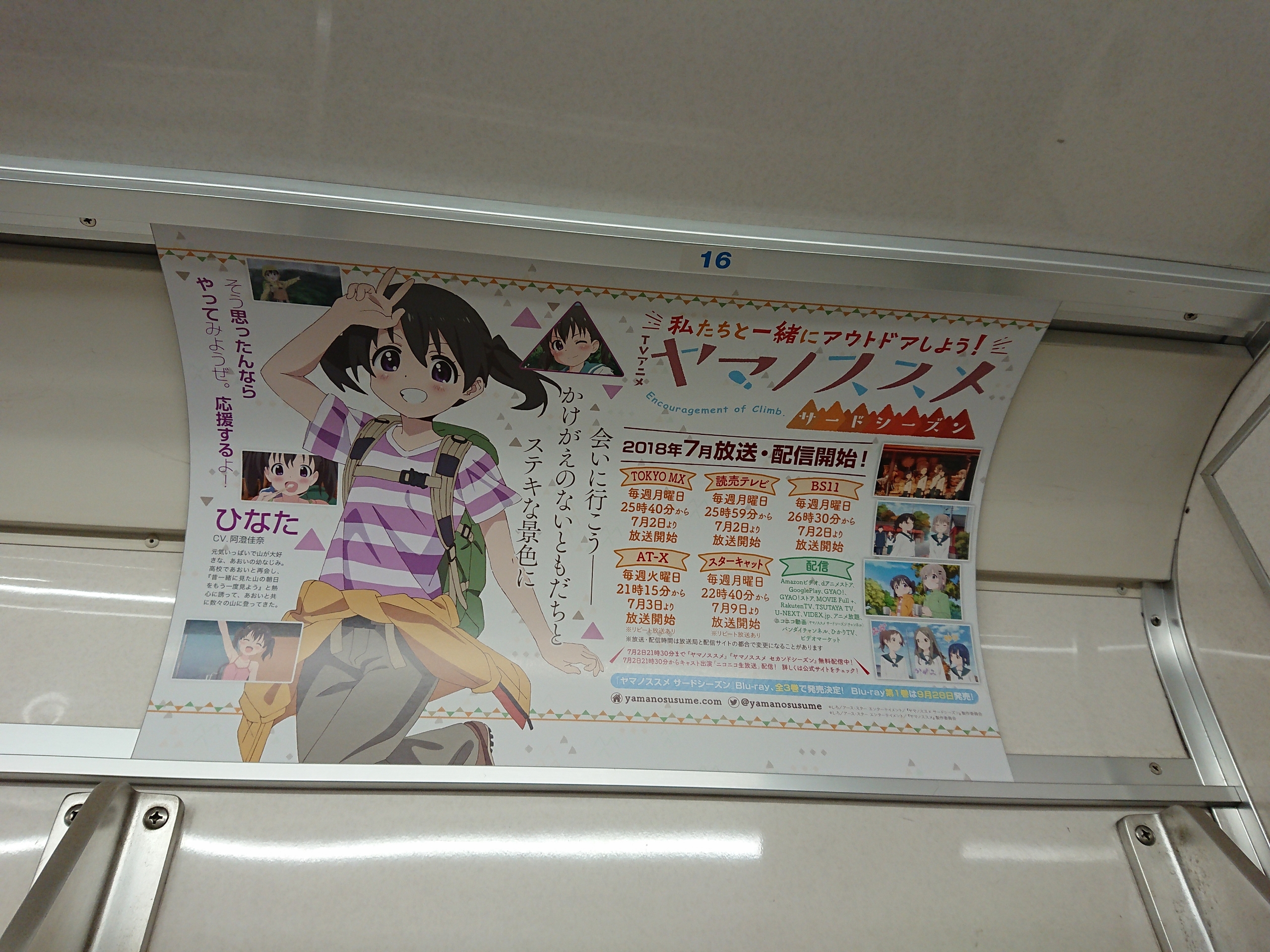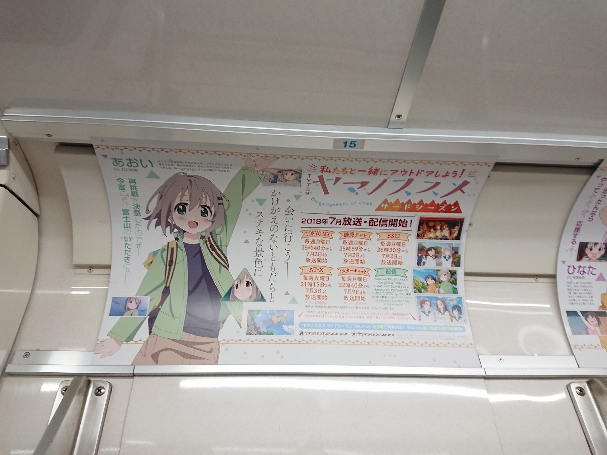 車内にはいると、まさに「ヤマノススメ」一色でした。