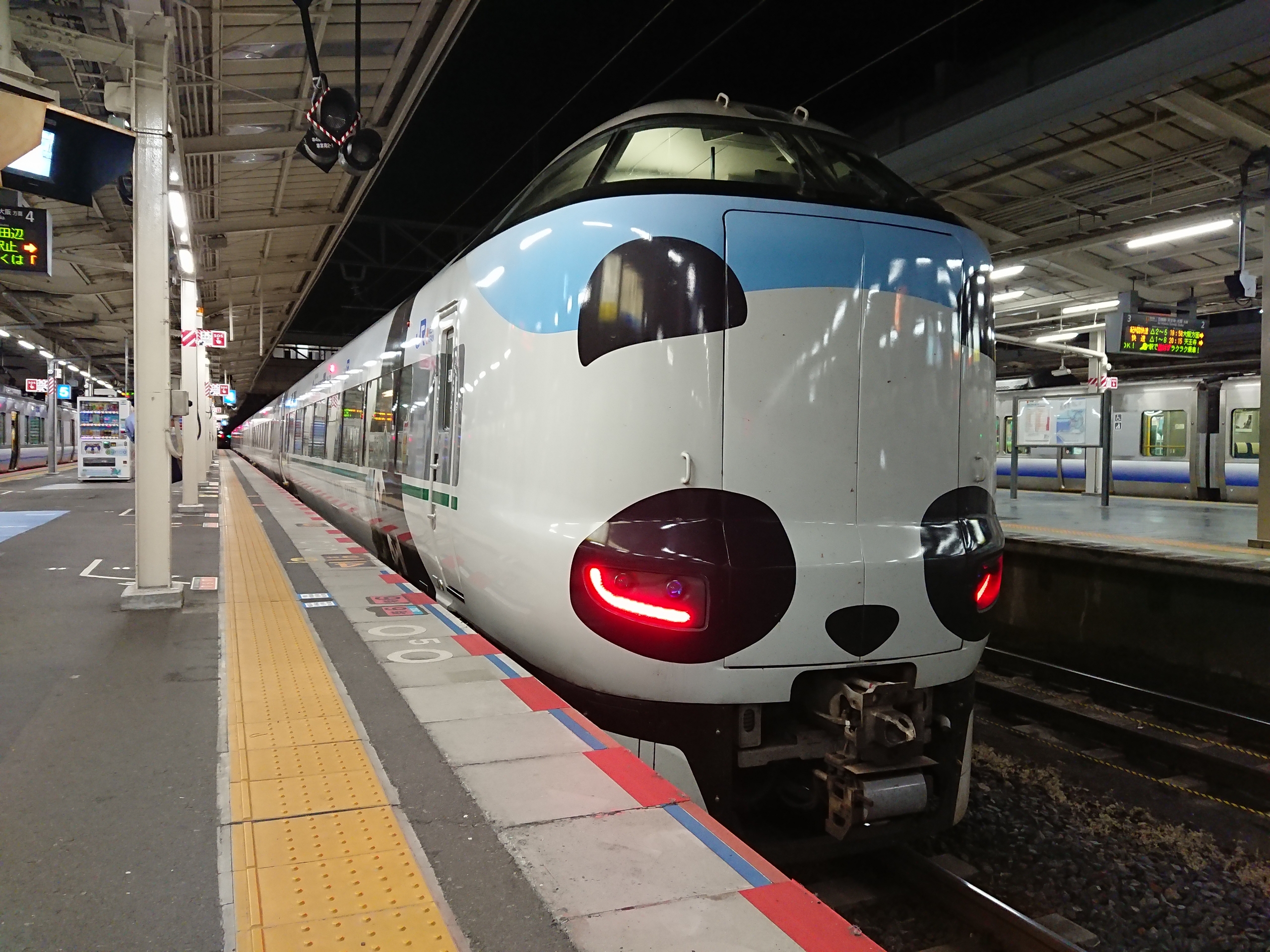 車内の様子は、改めてのエントリーでご紹介したいと思いますが、ようやく「パンダくろしお」に乗車できた満足感と、車内が思っていた以上にアドベンチャーワールドの気分満載だったので、本当に仕事の帰りに寄り道して乗ってみてよかった、と感じました。