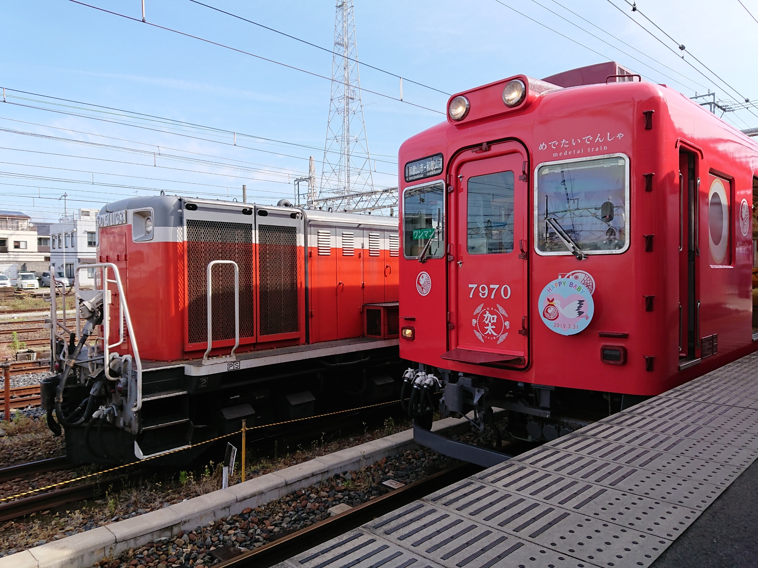 この日は和歌山港線に「めでたいでんしゃ(こども)」が運用に入っていたので、DD51型ディーゼル機関車との並びもしっかり見届けることができました。