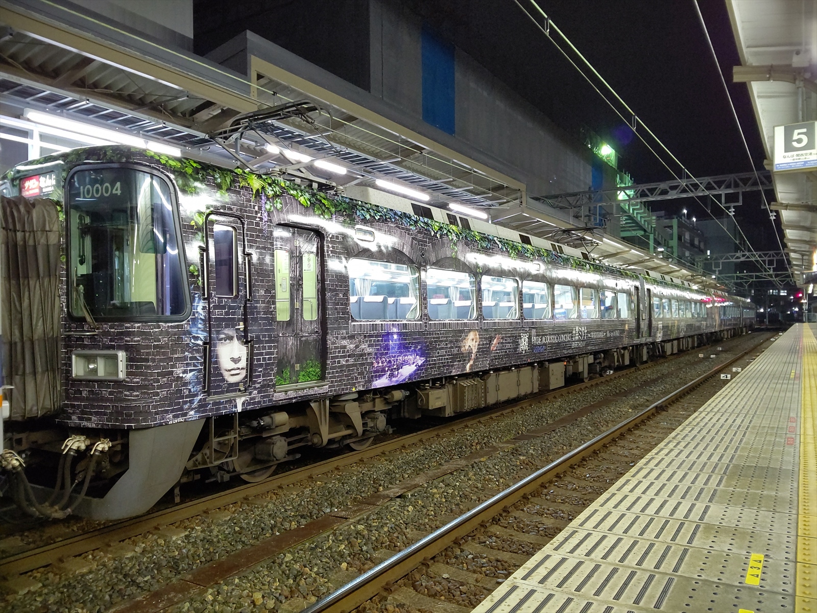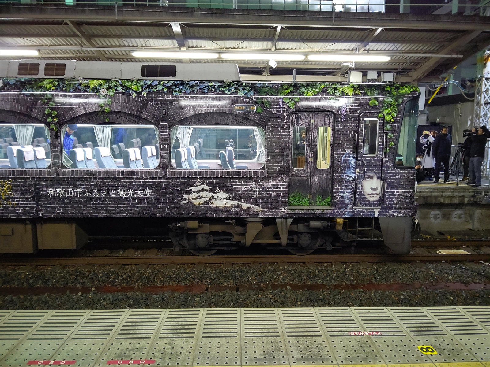 既に数人のファンとテレビ局がスタンバイしている中、和歌山市駅4番線に「HYDEサザン」こと10000系10004編成が入線してきました。