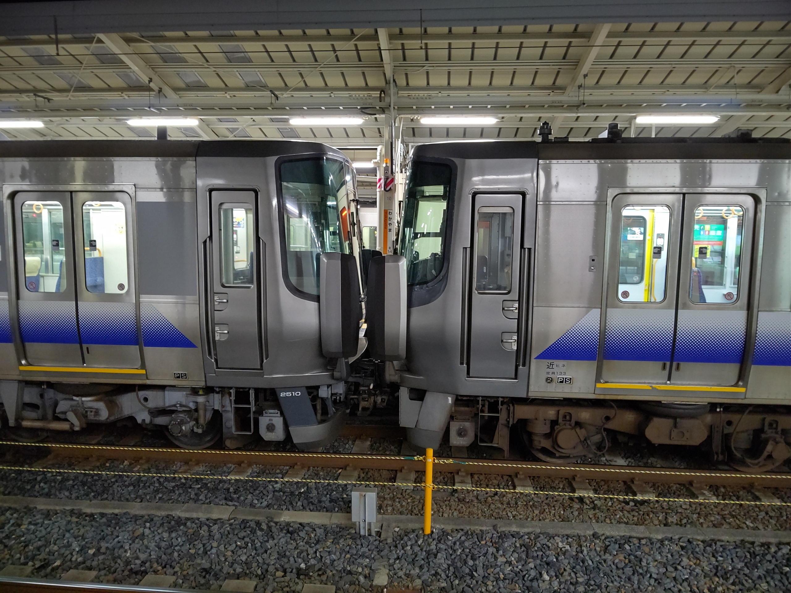 少し分かりづらいかも知れませんが、223系の更新車同士の併結を見つけました。