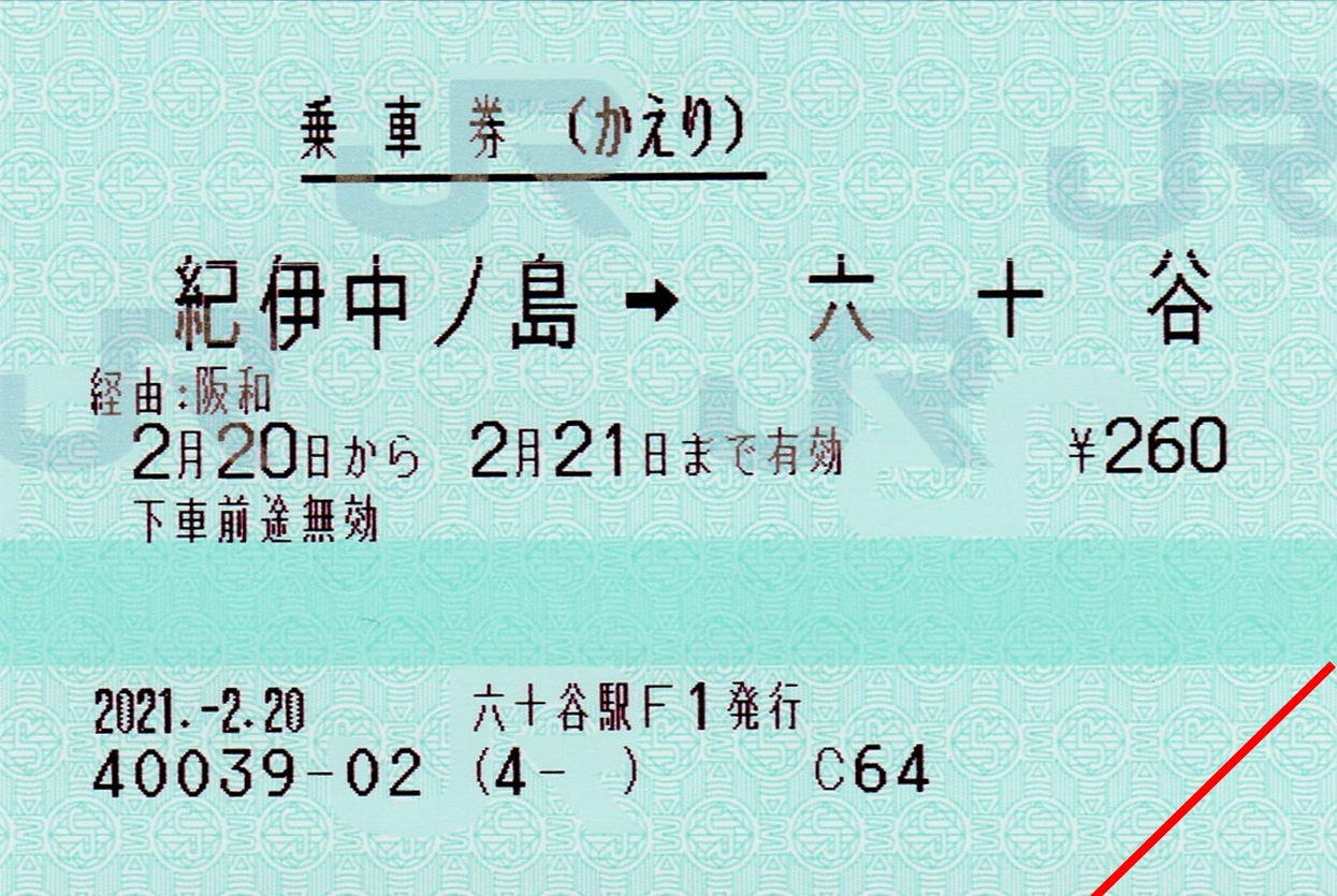 3月13日(土)以降は、六十谷駅でマルス券を購入できなくなることから、入場券に加えて、隣の駅・紀伊中ノ島駅までの往復乗車券を購入しました。