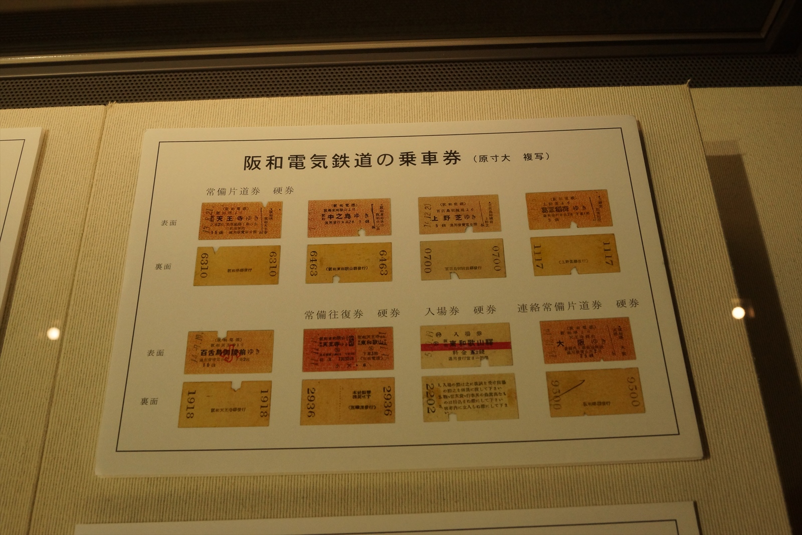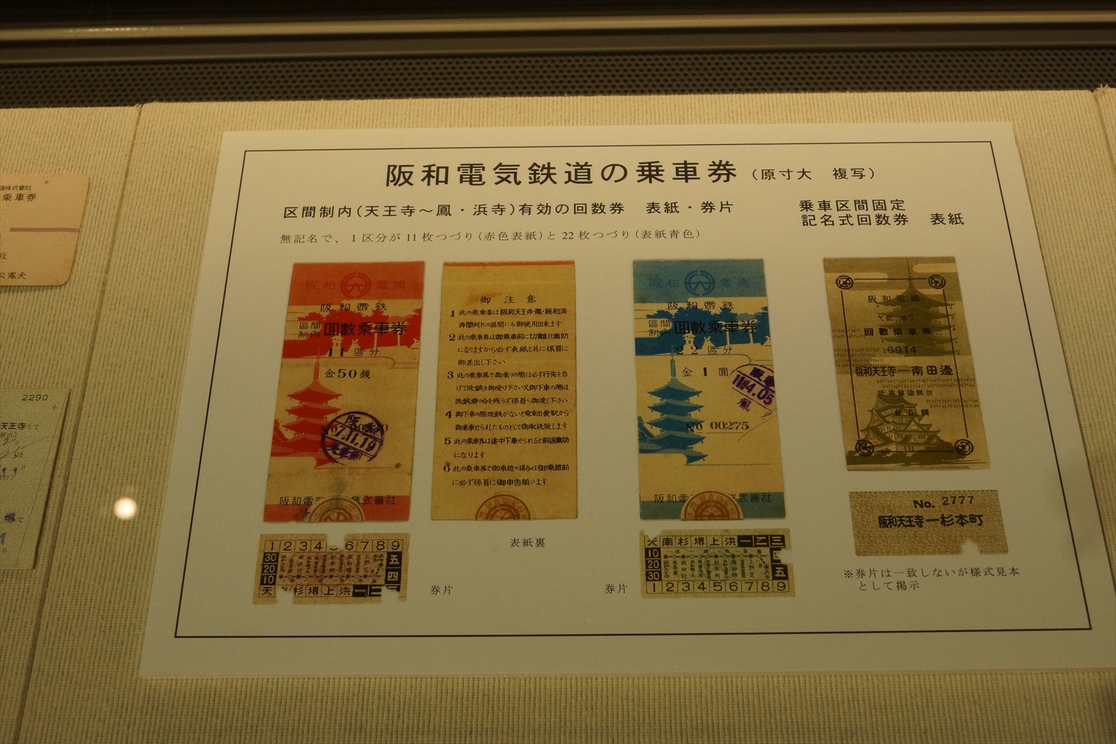 実物の展示ではありませんが、阪和電鉄時代のきっぷの複写物が展示されていました。