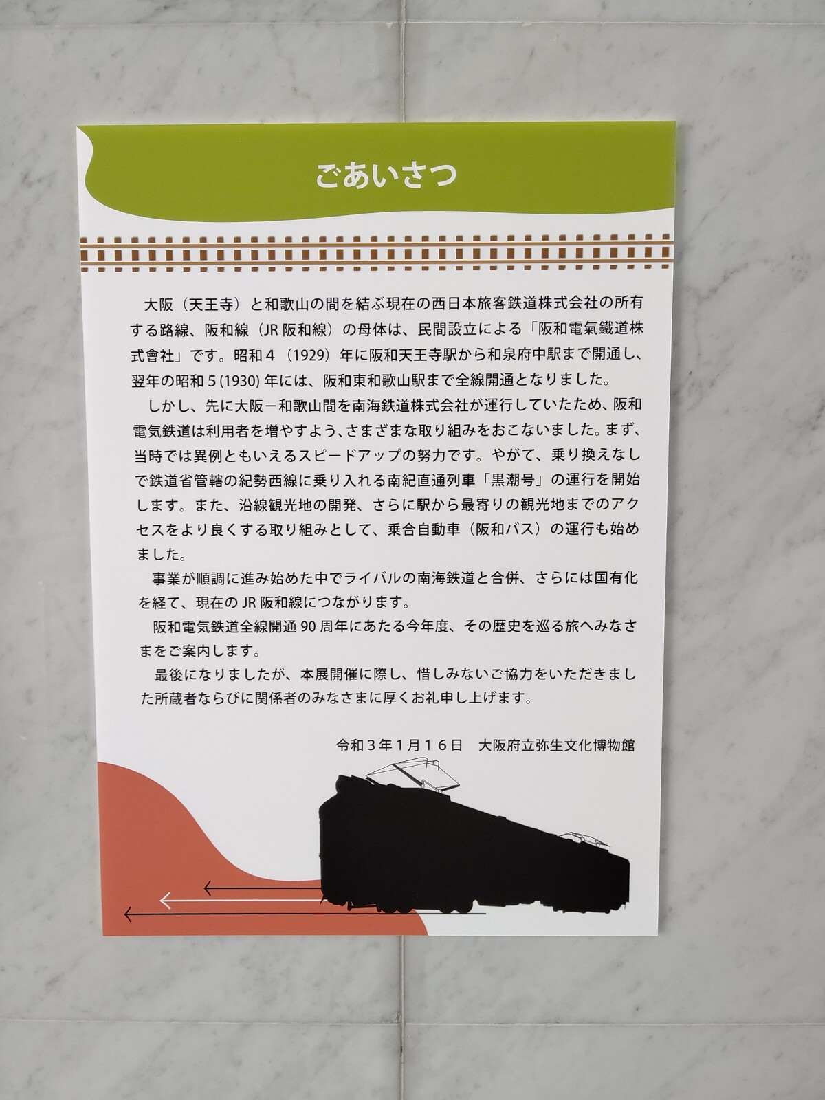 ブログでアップするのも終了日当日となってしまいましたが、阪和電鉄の短い歴史を深く紹介した展示としてご紹介できればと思った次第です。
