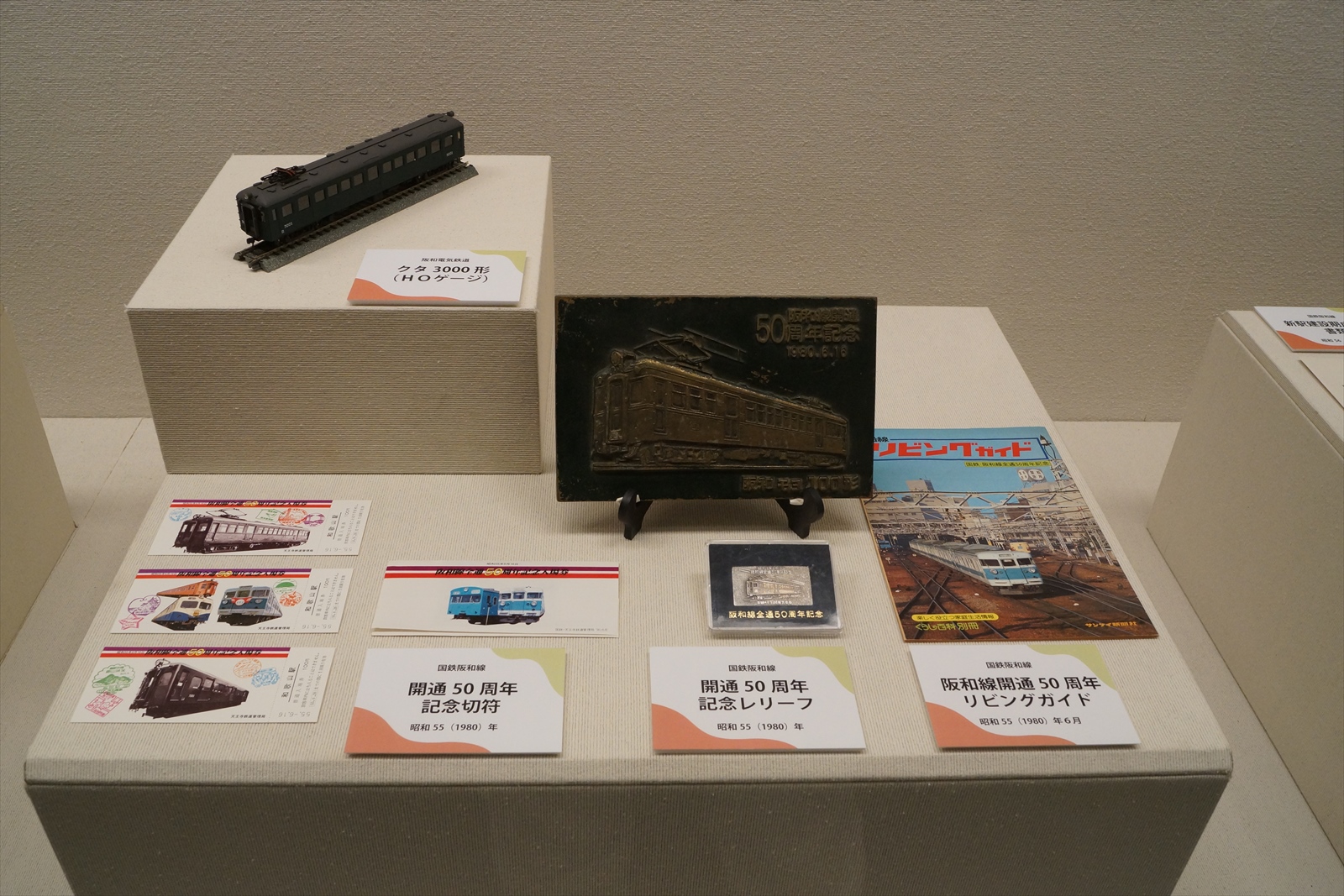 ▲主に国鉄時代のグッズですが、阪和線50周年記念として、開業当時の車両(モヨ100)が選ばれているのは注目すべきところといえるでしょう。