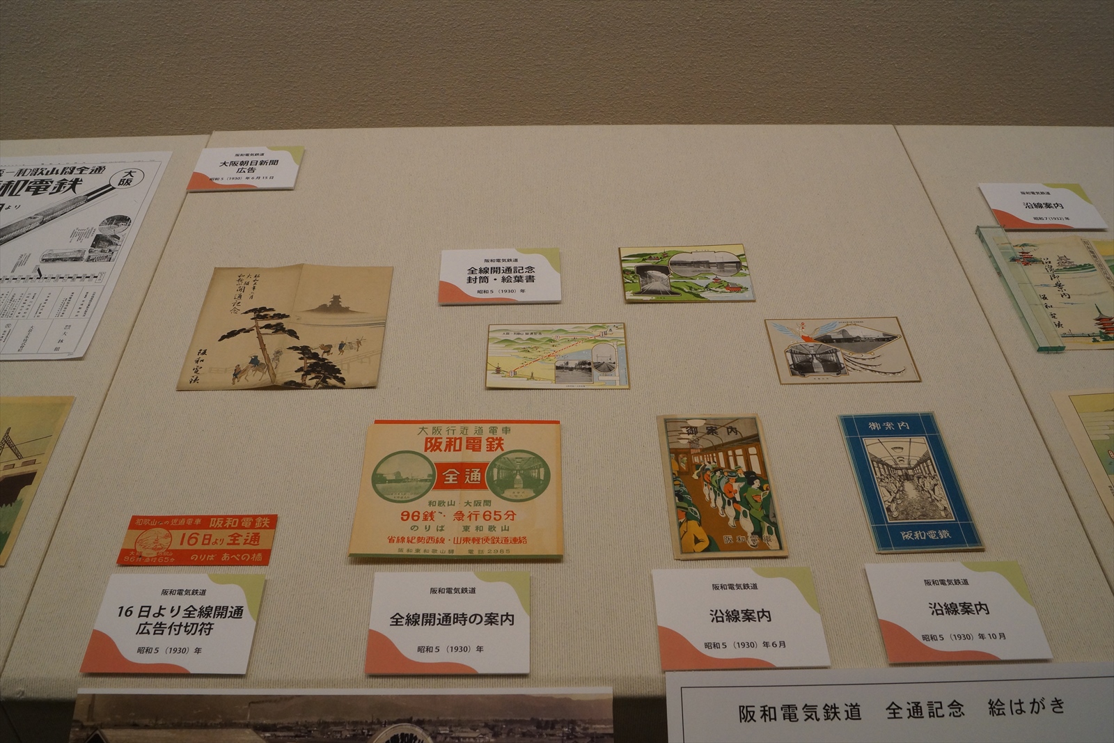 阪和電鉄開通、全通時の広告、きっぷなどです。