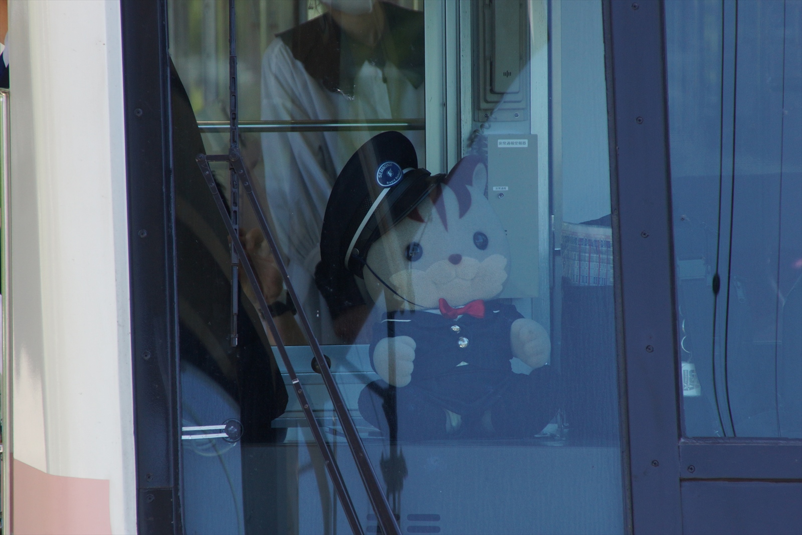 運転室には、泉北高速鉄道の制服を着た「シルバニアファミリー」の人形が置かれていました。