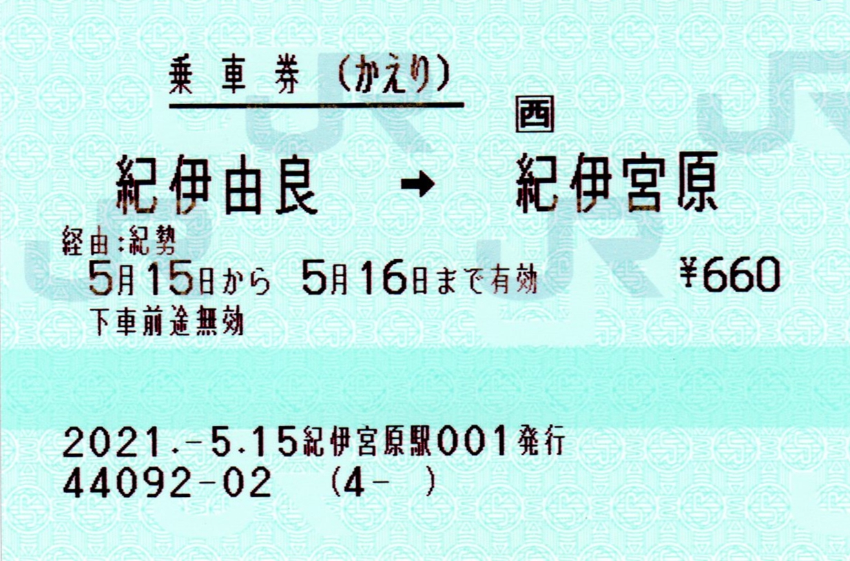 以上が、紀伊宮原駅で購入したきっぷのご紹介でした。