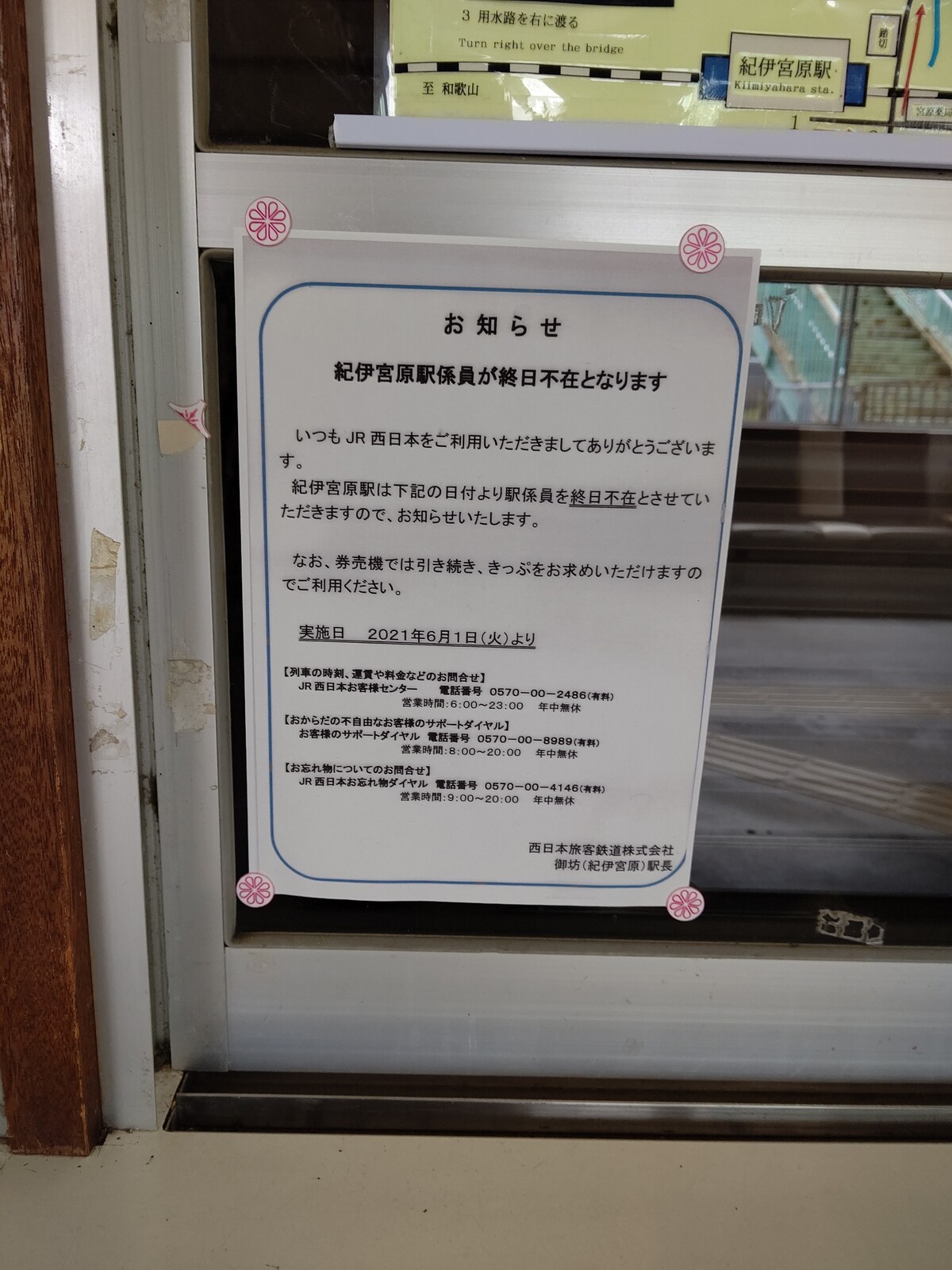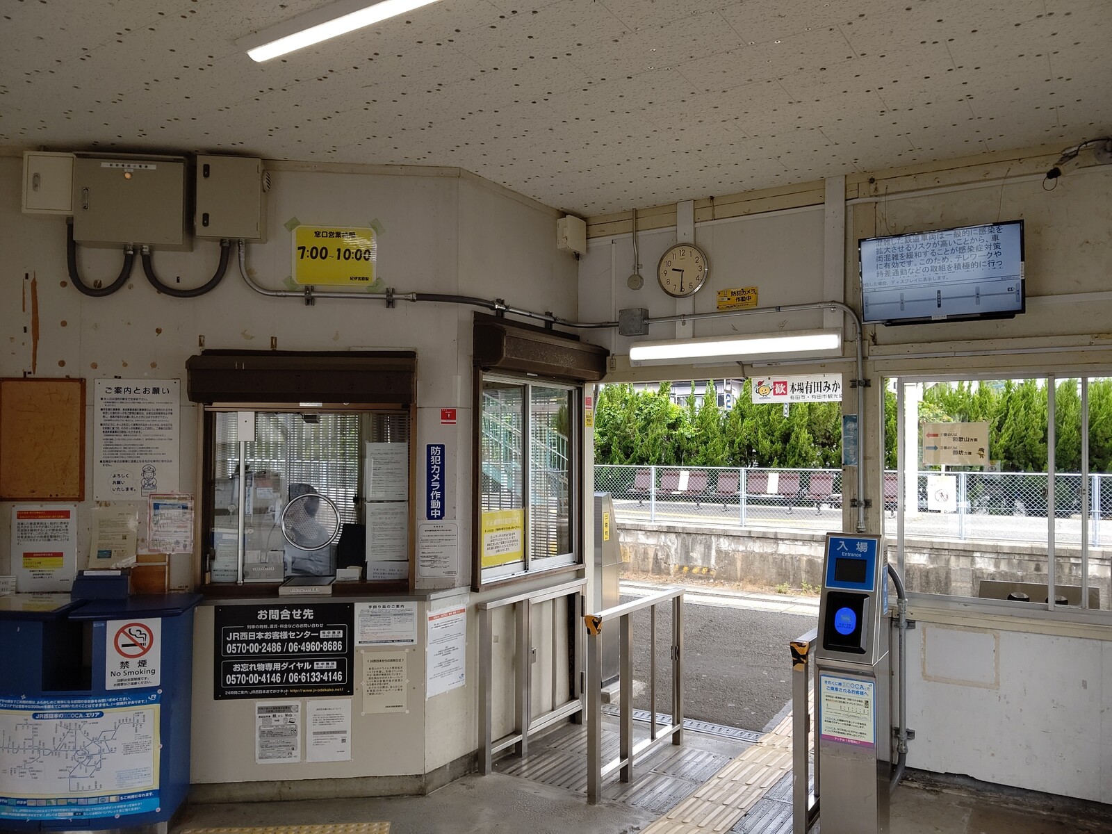 そういうこともあって、従来「みどりの窓口」が設置されていない係員配置駅でもきっぷうりばの閉鎖も行われており、きのくに線でも黒江駅のきっぷうりばが3月12日(金)限りで閉鎖となりました。