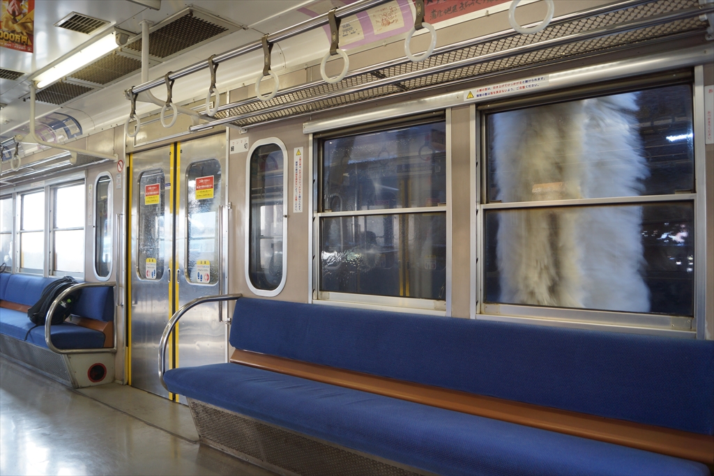 車内でも「豊郷あかね」パネルを立てての撮影です。