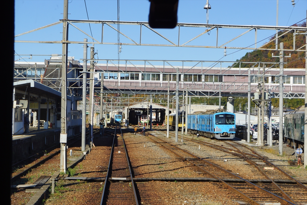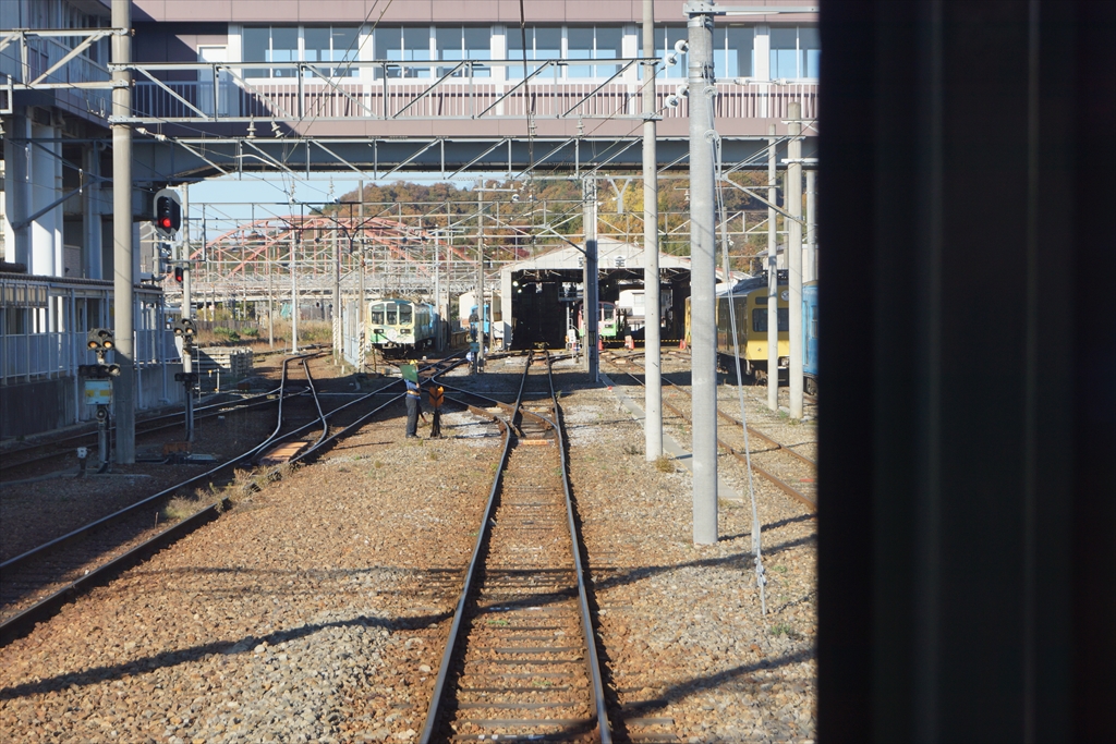 近江鉄道の車庫はほぼ南北に向かって設けられていますので、こちら側の写真はもろに逆行になってしまいますので、あくまで雰囲気を楽しんでいただければ、と思います。