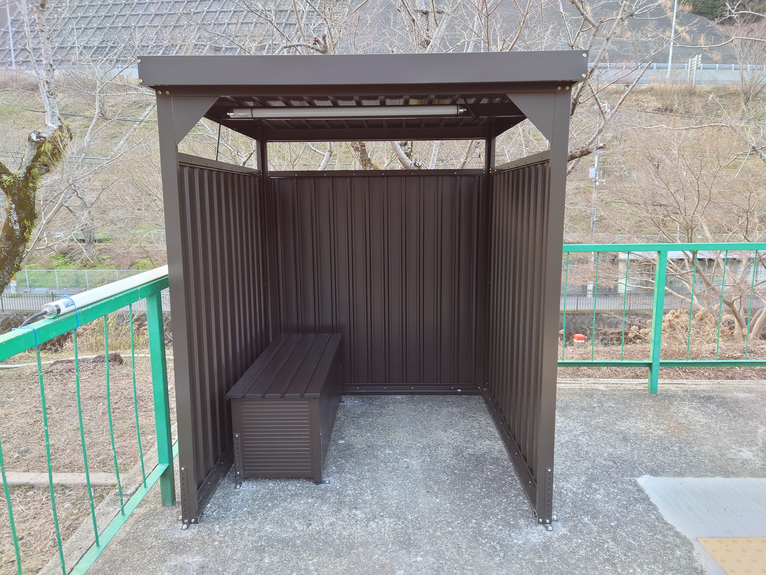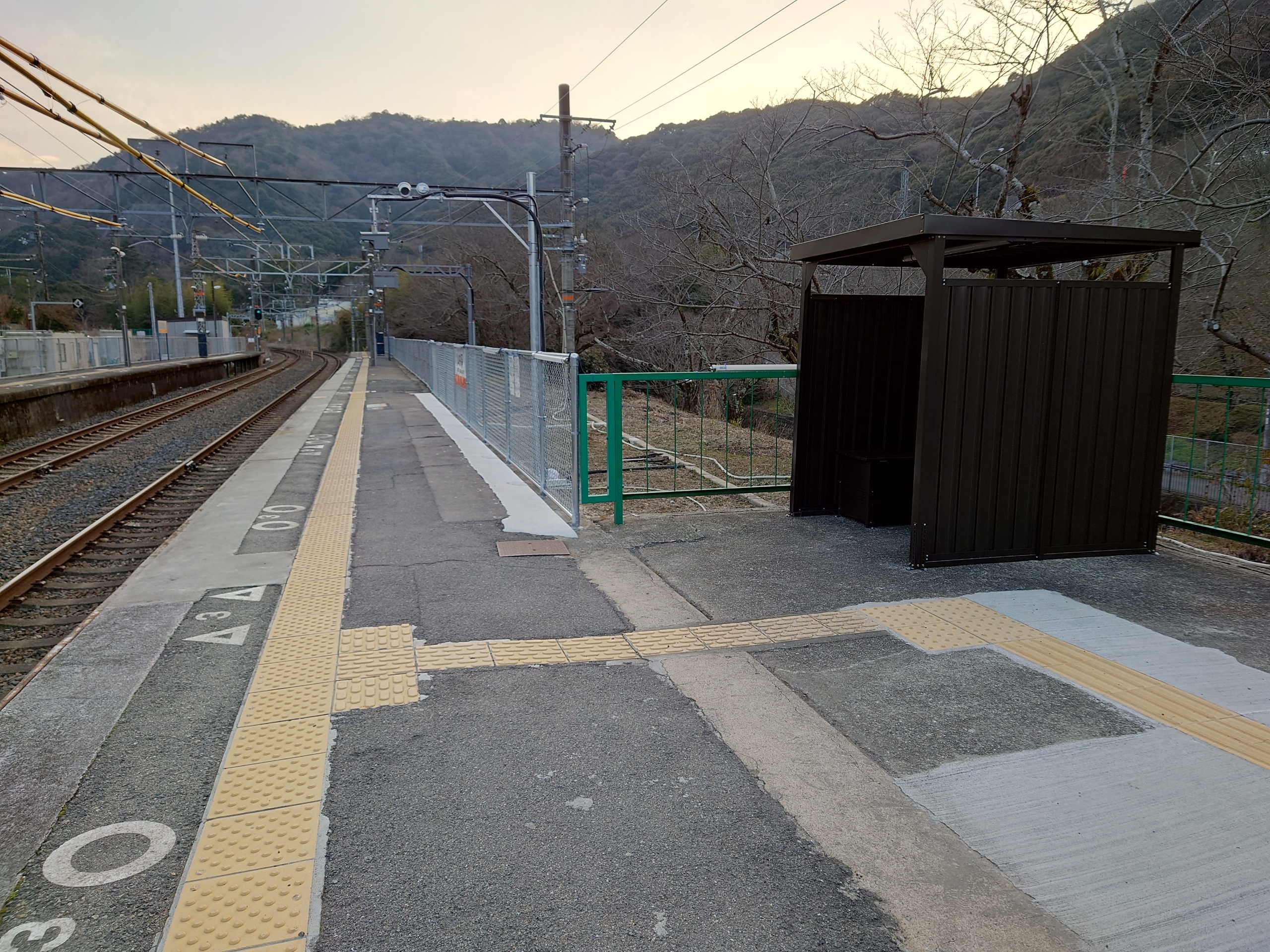以前はホーム上に屋根とベンチが設けられていましたが、それらは撤去され、その代わりに小さな待合室のようなものが設けられていました。
