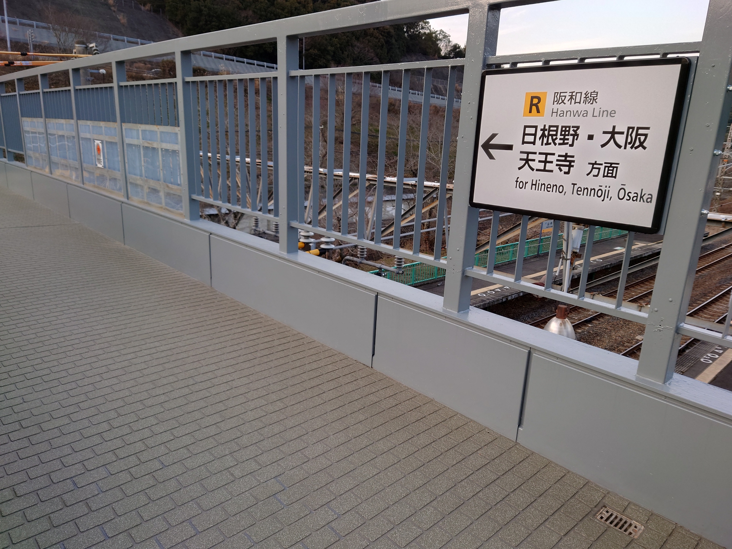 かつての跨線橋は黄緑色でしたが、今回の改装によりグレー調の塗色となりました。