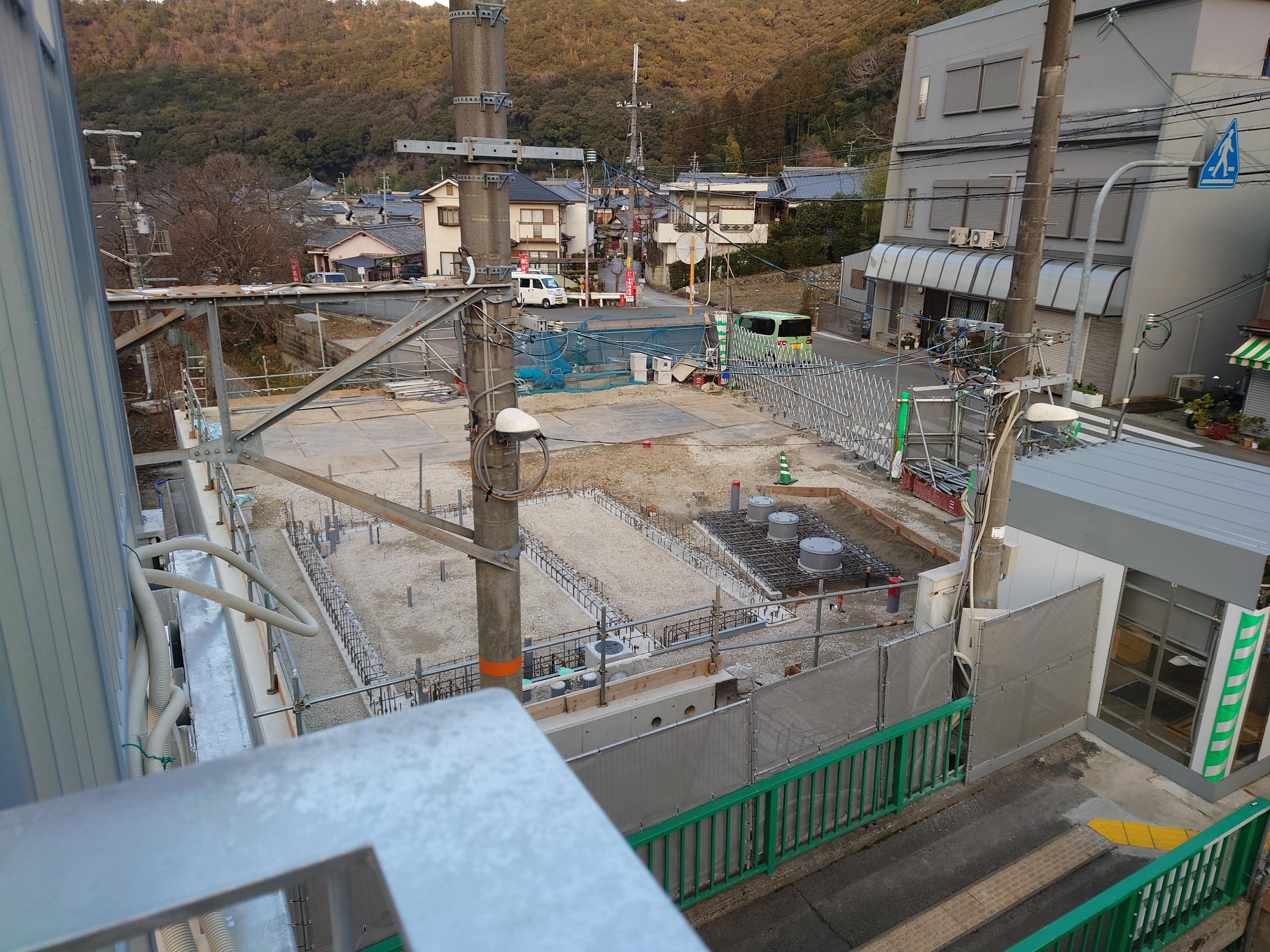 ▲跨線橋から駅舎改築工事現場を見下ろしてみます。