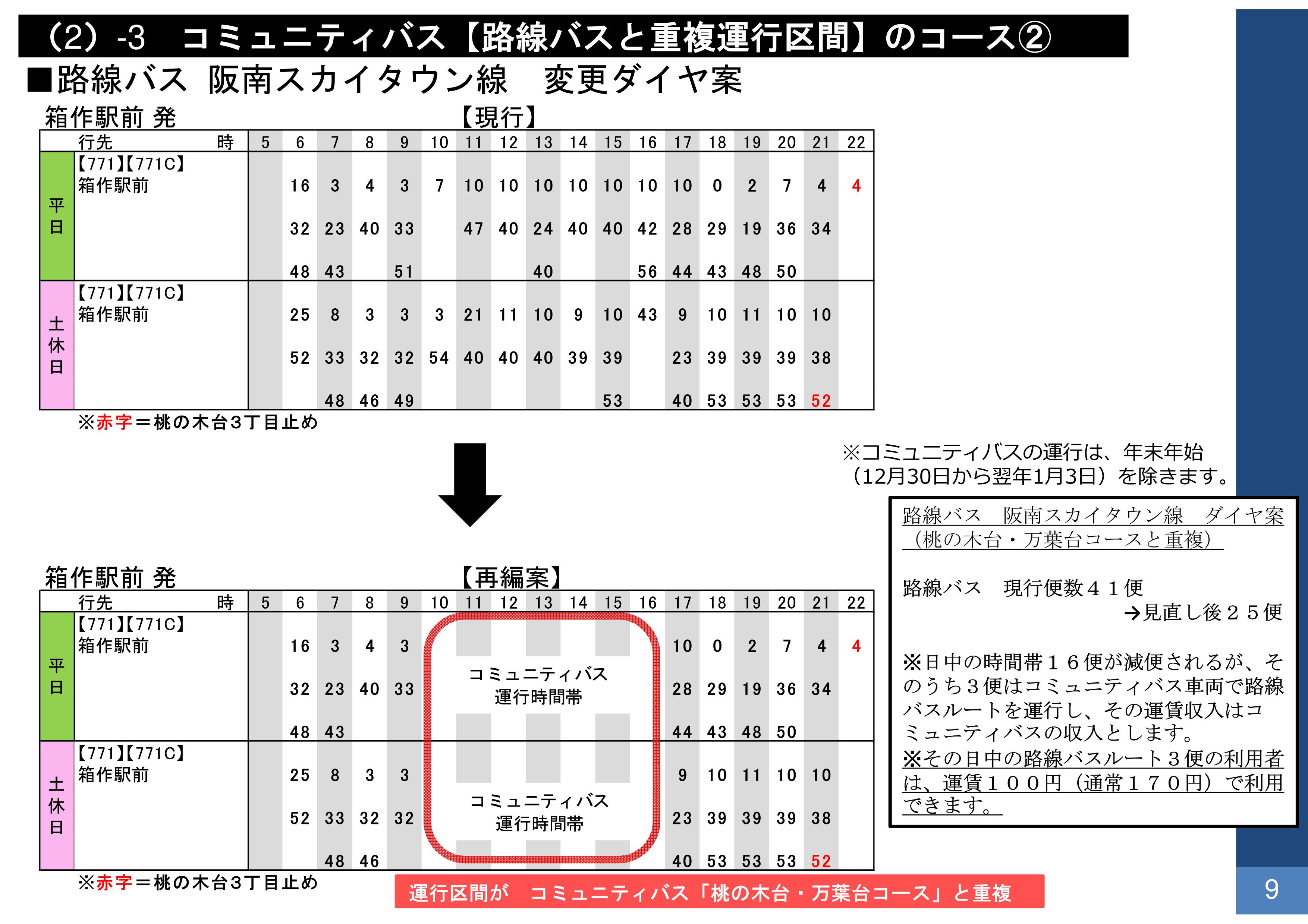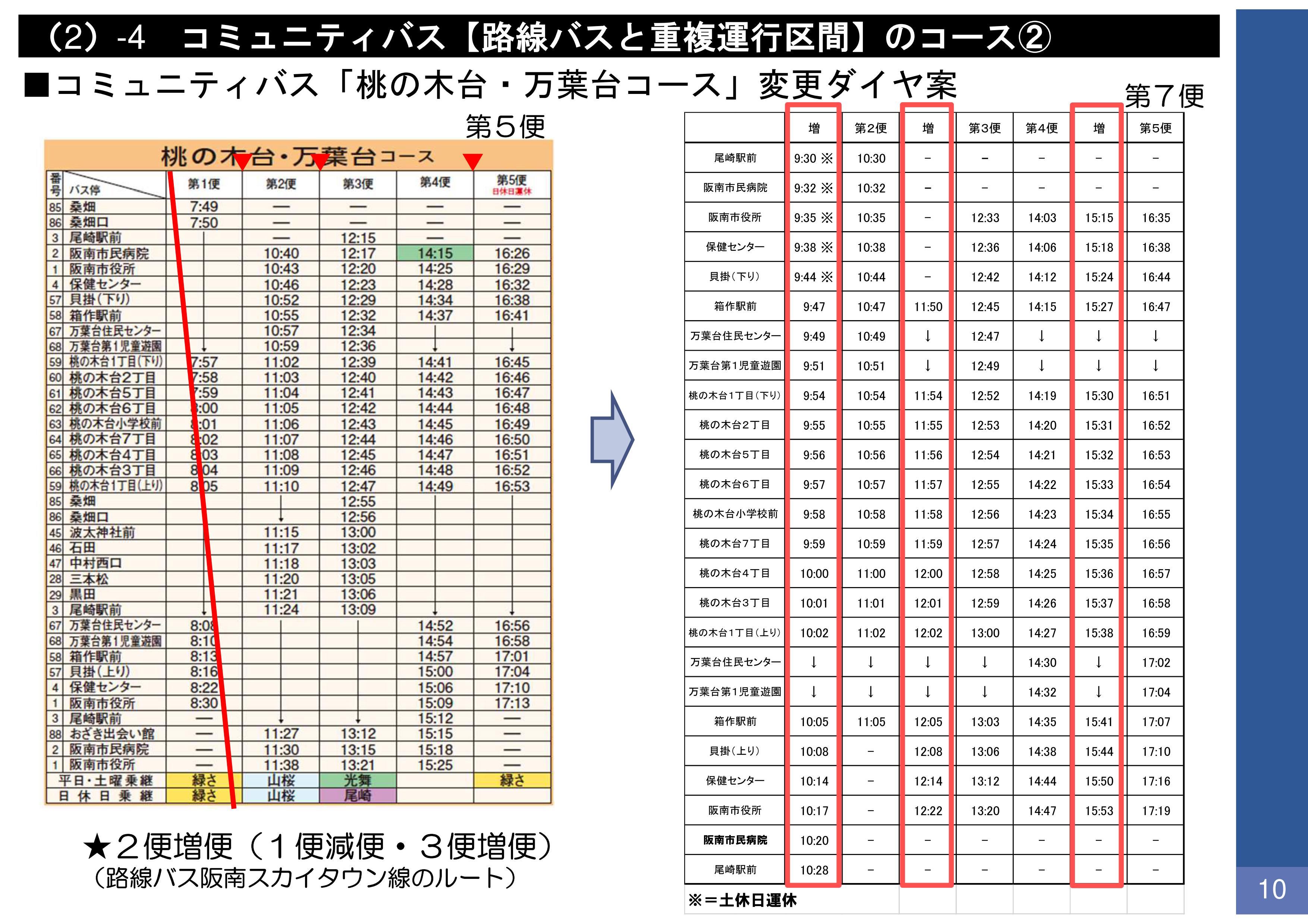▲コミュニティバス「桃の木台・万葉台コース」変更ダイヤ案