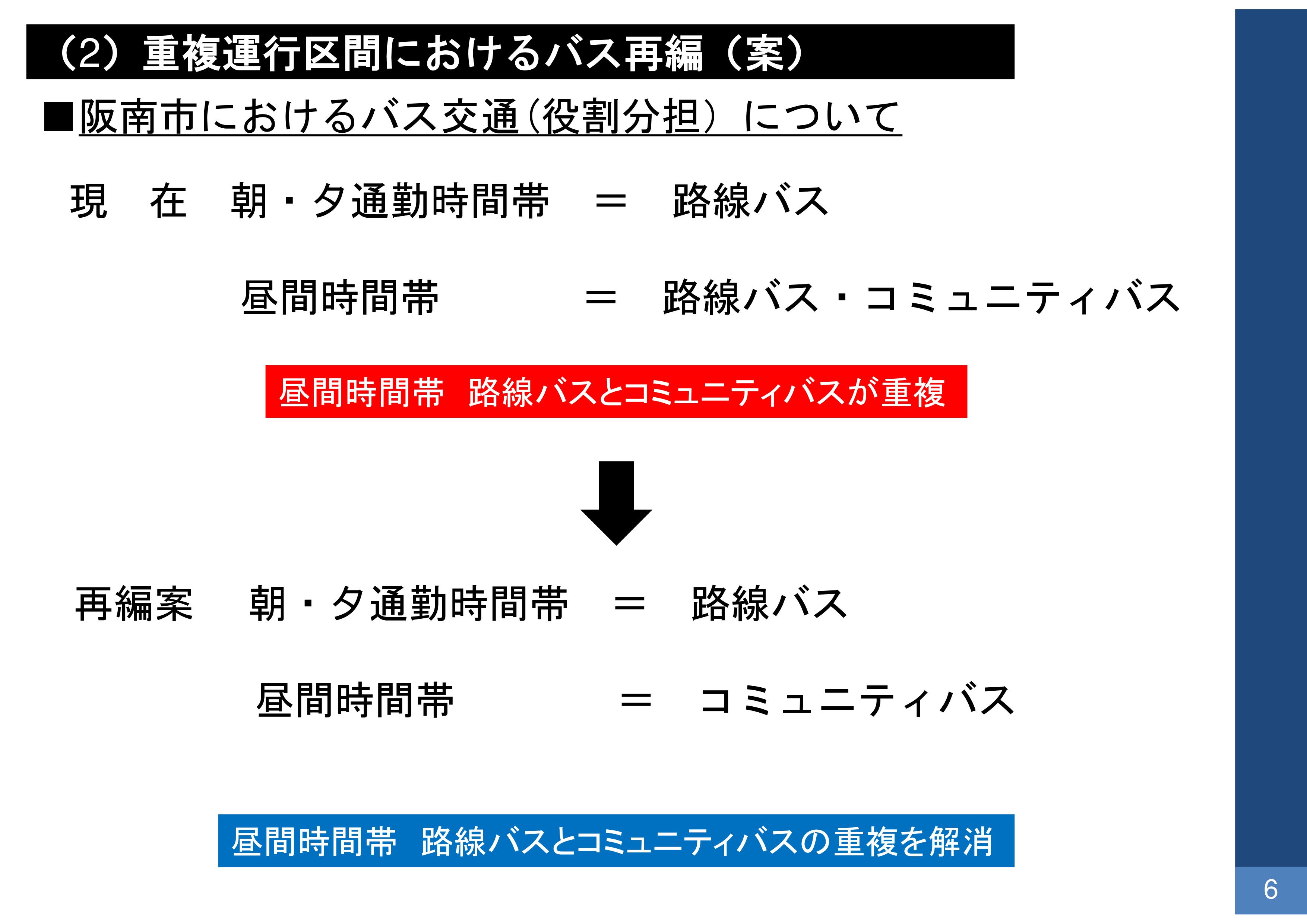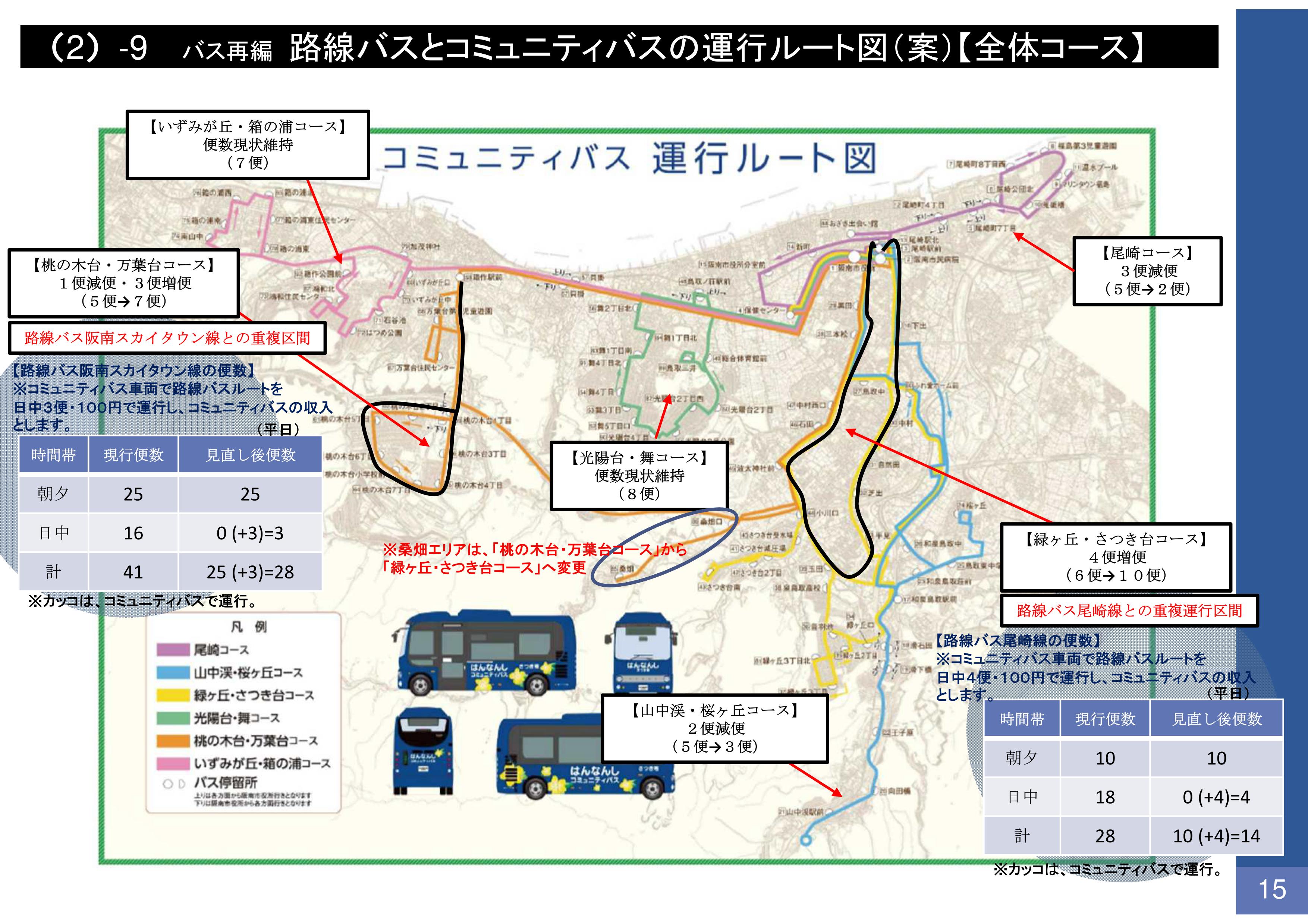 以上が、今回阪南市役所から提示のあった路線バス及びコミュニティバスの再編内容であります。