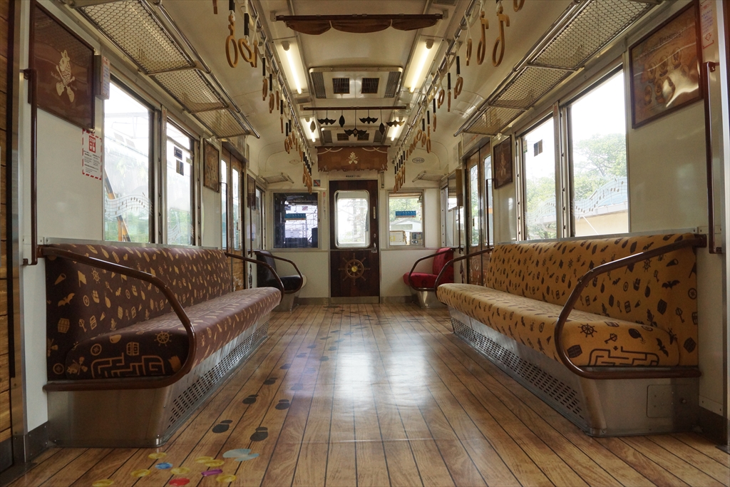 こちらの「めでたいでんしゃ かしら」の車内にも入ることができました。