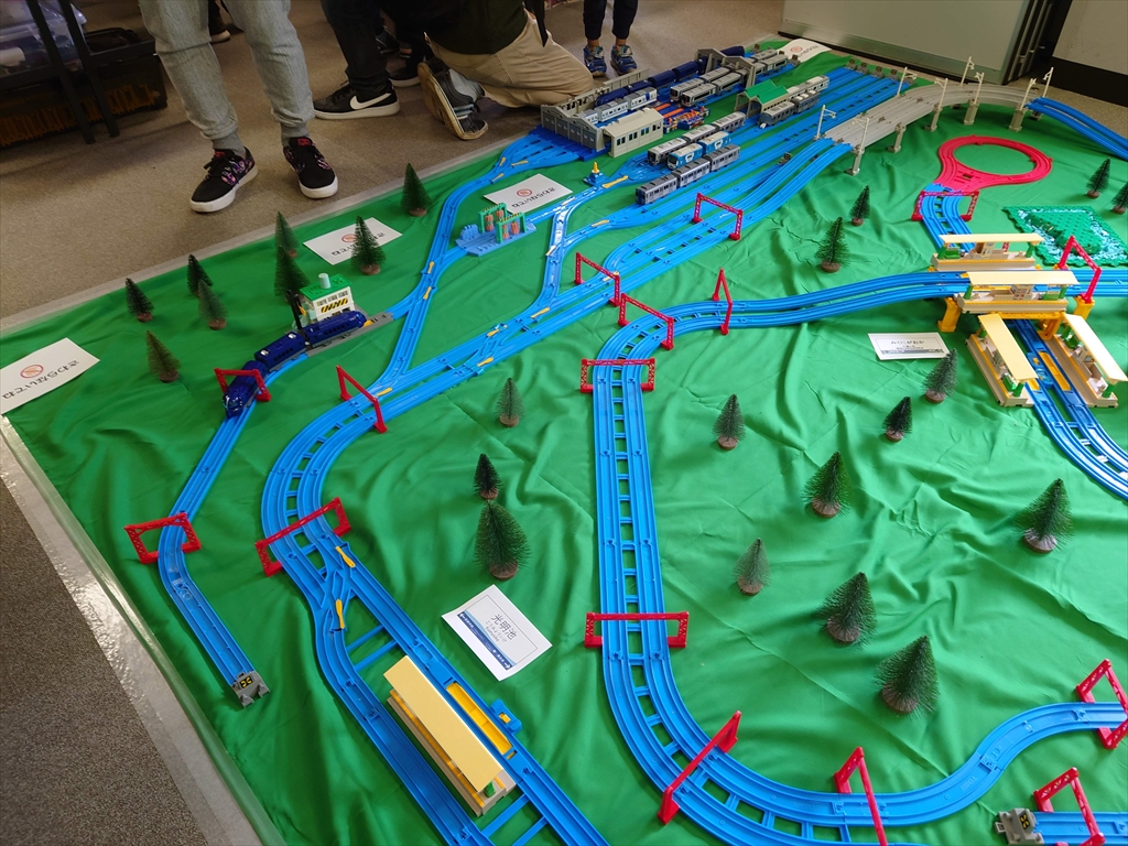 近年、このように「プラレールで実在の配線を再現」するイベントが実施されている事例は聞いていましたが、まさかここ「せんぼくトレインフェスタ」でそれを目にするとは、思いもしませんでした。