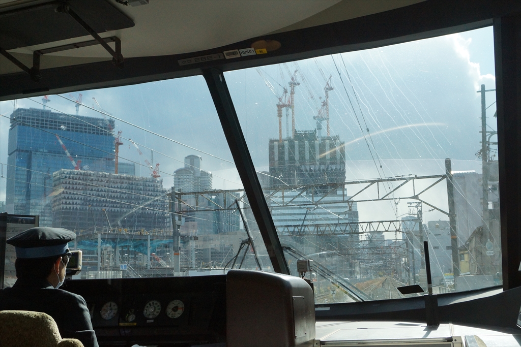 列車はその後、かつての「梅田貨物駅」、現在のグランフロント大阪など梅田の高層ビルを眺めながら走ります。