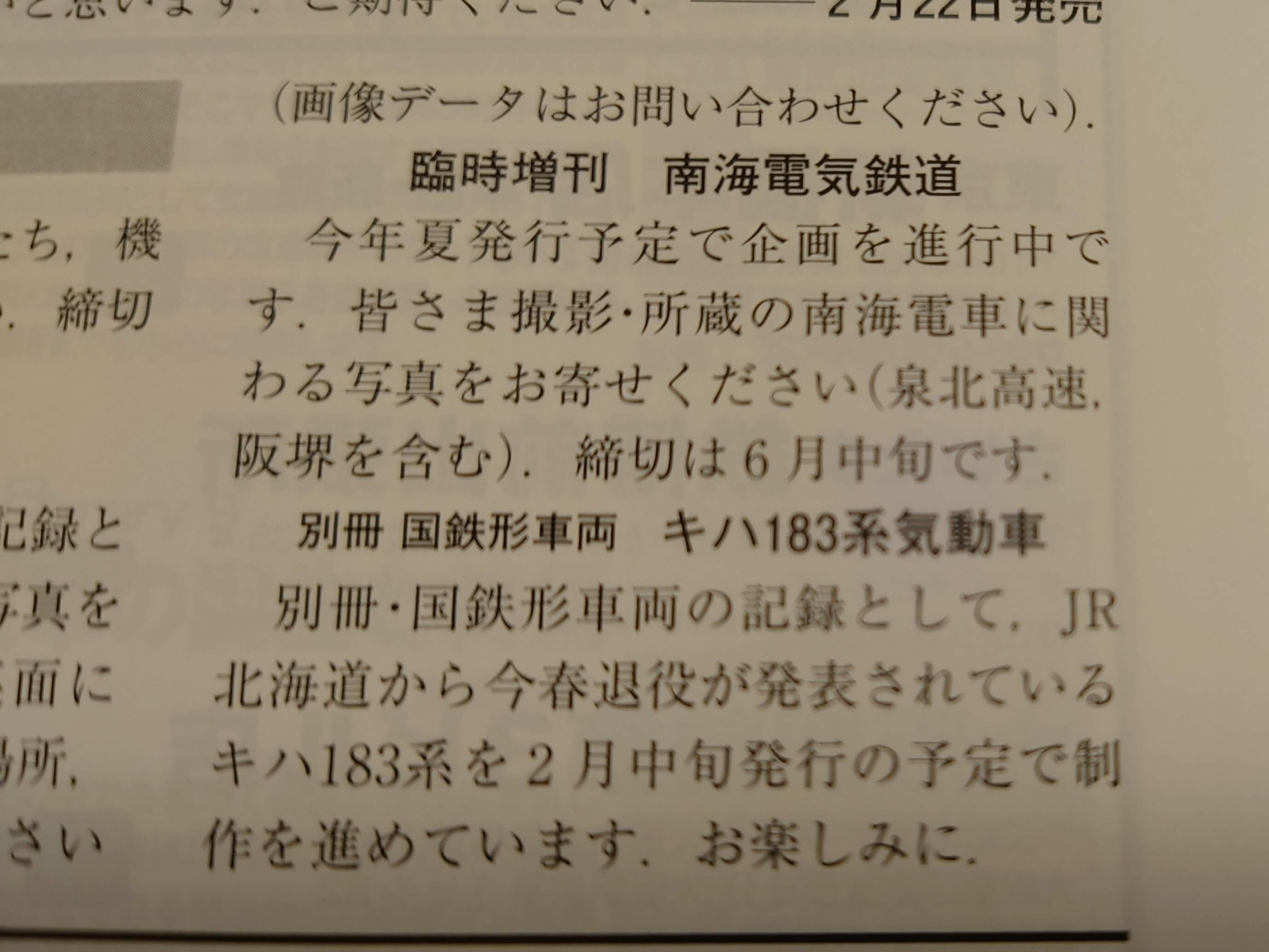 ご覧のとおり、「臨時増刊 南海電鉄鉄道」が発行されることが発表されました。