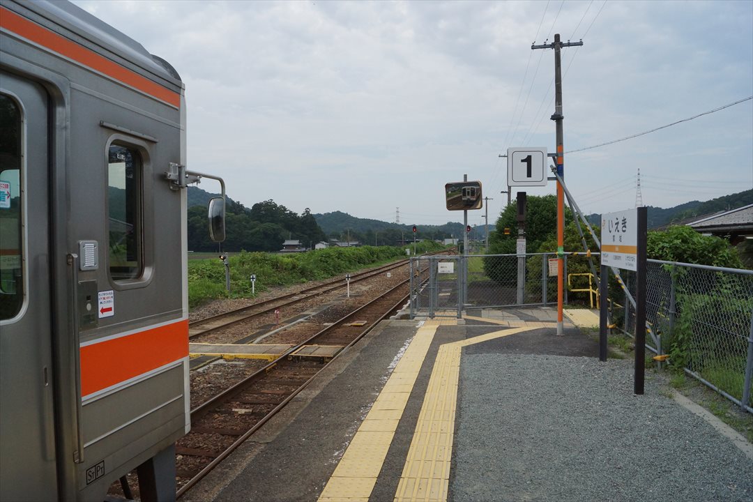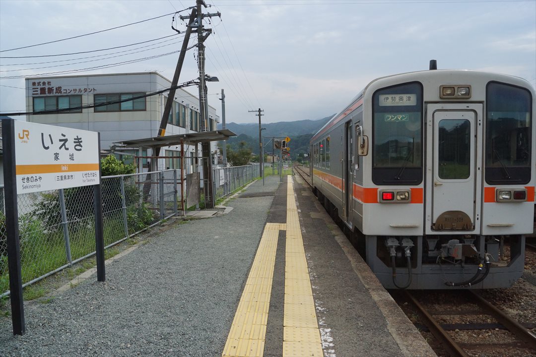 松阪を出ておよそ30分、沿線で唯一交換可能な駅で、かつ駅員配置駅である「家城(いえき)」駅に到着します。