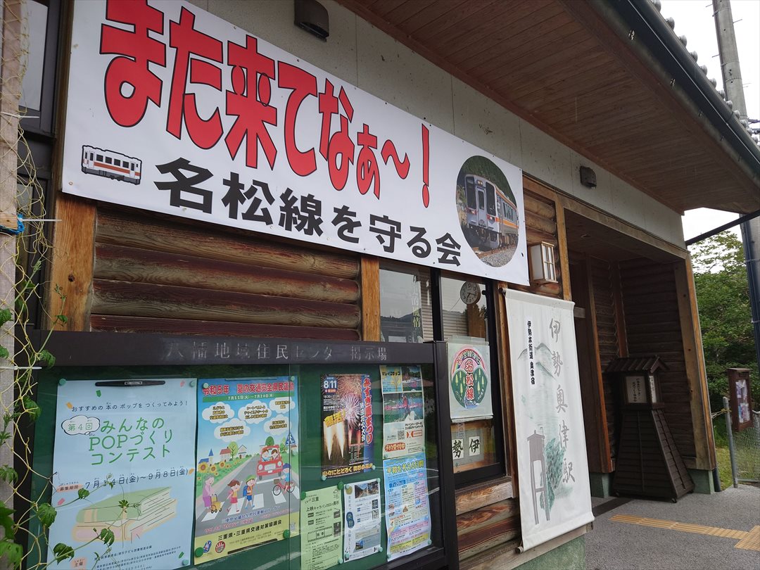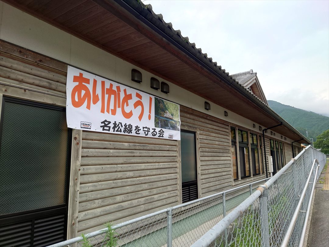 そして駅舎側にも「名松線を守る会」作成の横断幕がありました。