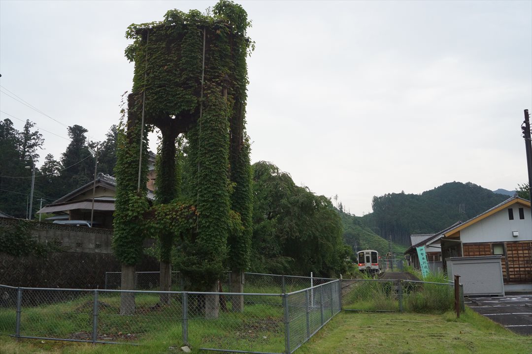 駅構内の端には、蒸気機関車の時代に使用されていた給水塔が残っていました。