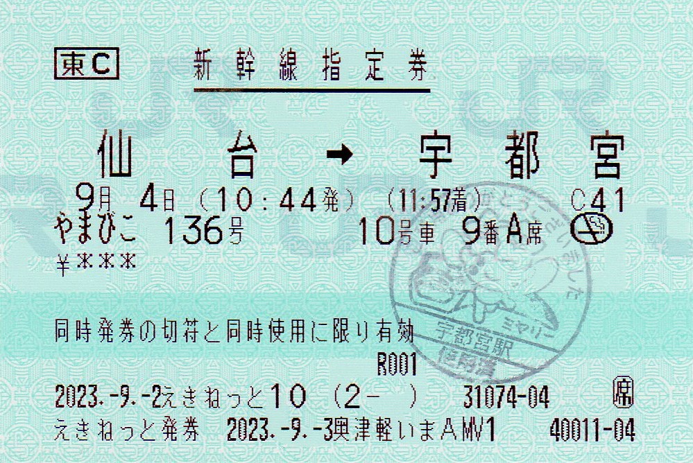 参考に、仙台から乗り継いだ「やまびこ136号」ですが、こちらには「T」の表記はありません。