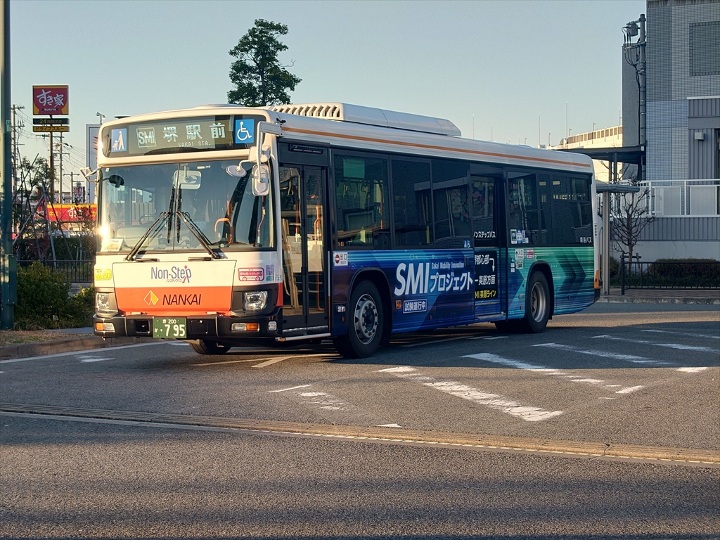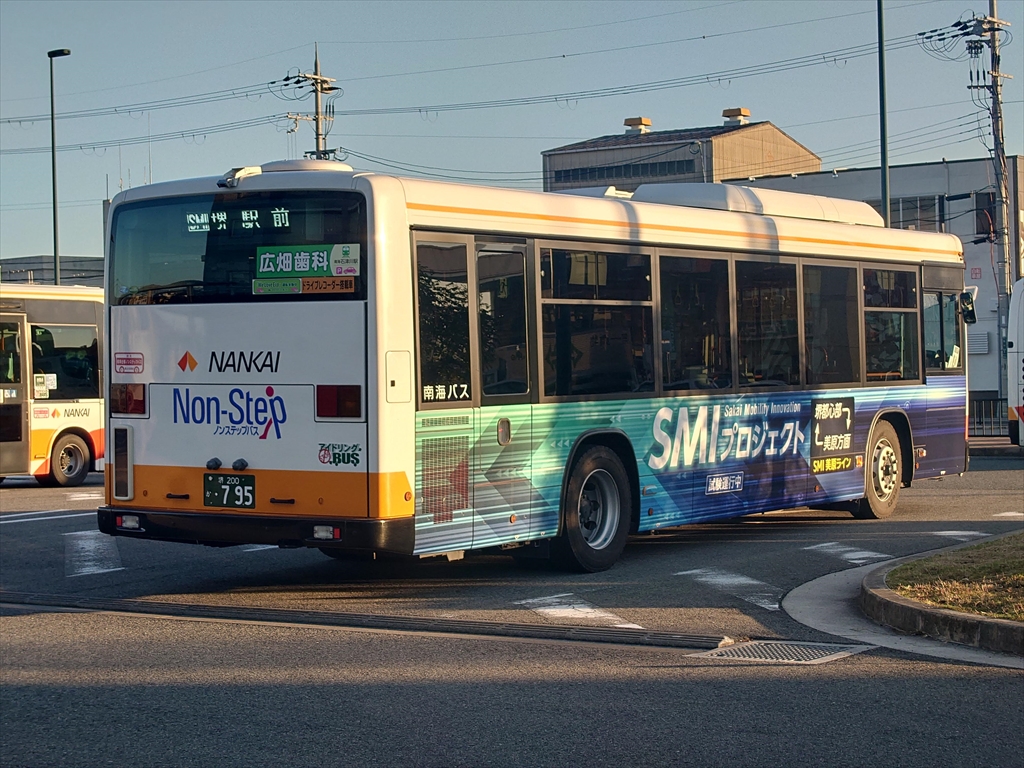 区役所周辺をプラプラしていますと、堺駅前からやってきたSMI美原ラインのバスが到着しました。