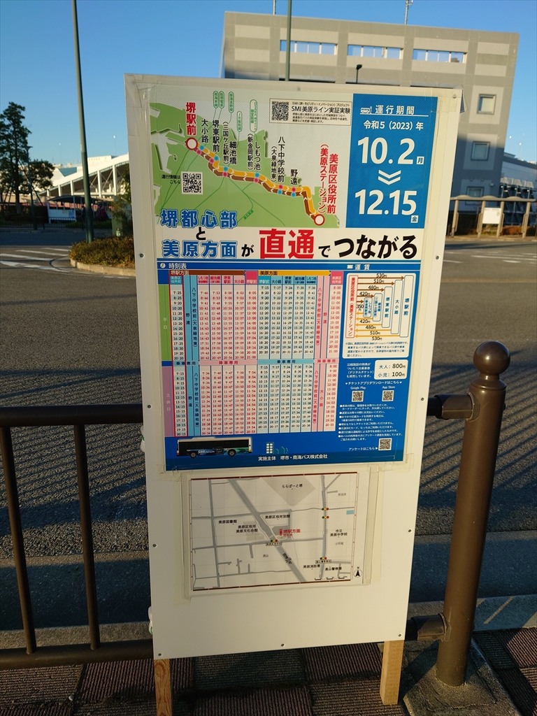 実証実験の運行期間が12月15日(金)と終了に近づくなか、昨年度は乗車できなかったこのSMI美原ラインに一度は乗車してみようと、美原区役所前〜堺駅前間を1往復してきまたので、その様子をご紹介したいと思います。