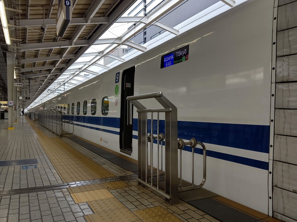 ▲新大阪駅に停車中の東海道新幹線「こだま」。