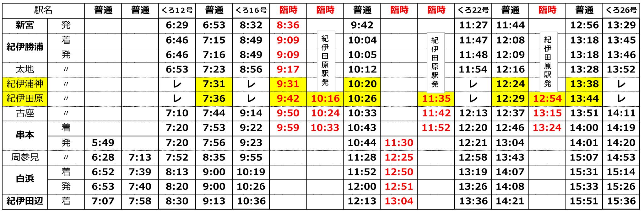 このように、3往復(6本)の紀伊田原折り返しの列車が設定されることとなります。