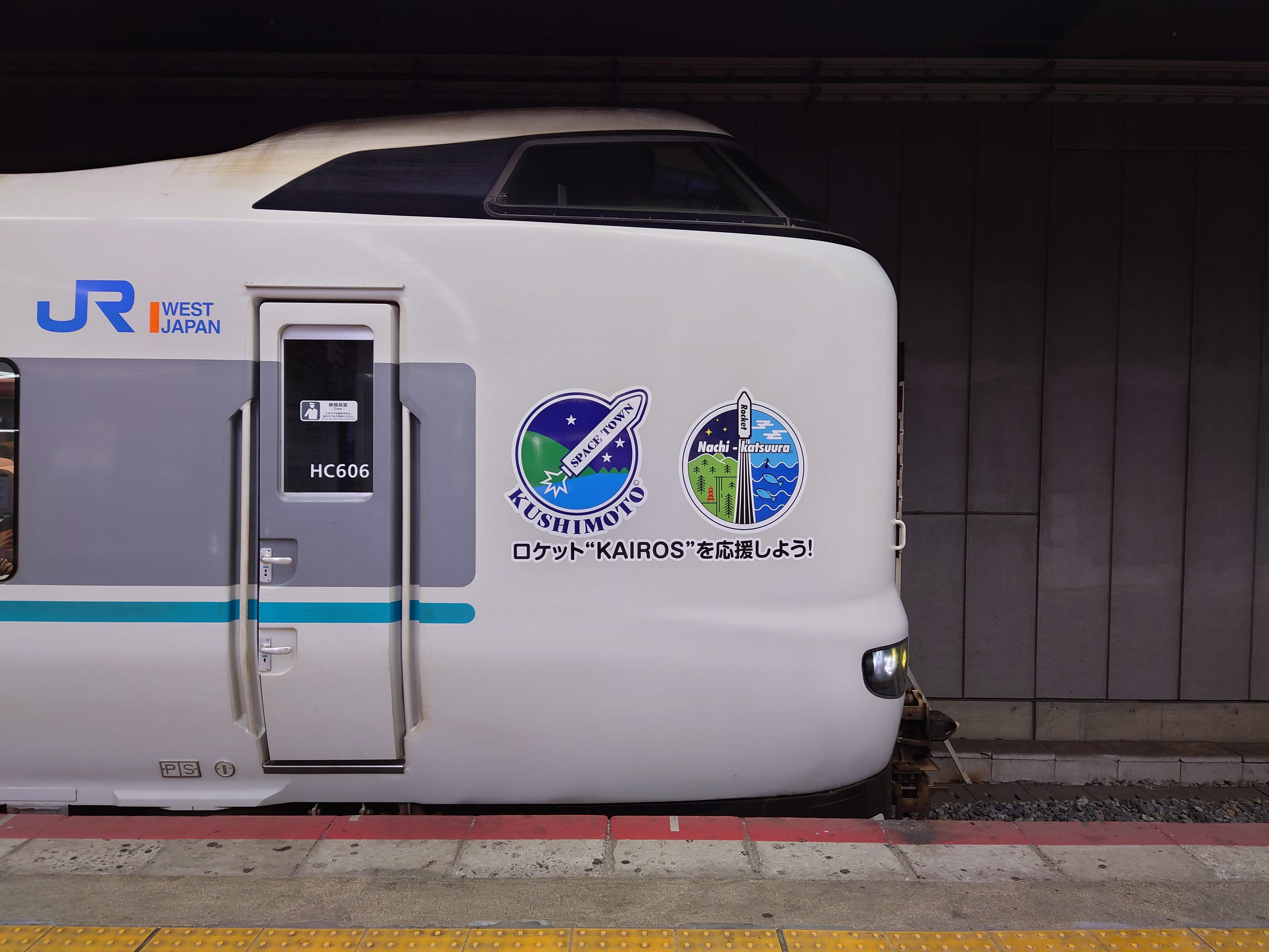 和歌山県や串本町が誘致した民間ロケット発射場「スペースポート紀伊」では、その第1号となるロケット「カイロス」の発射を地元でも応援しており、下記のとおり昨年3月から、287系にラッピングを施した、「特急くろしお『ロケットカイロス号』」が運行されています。