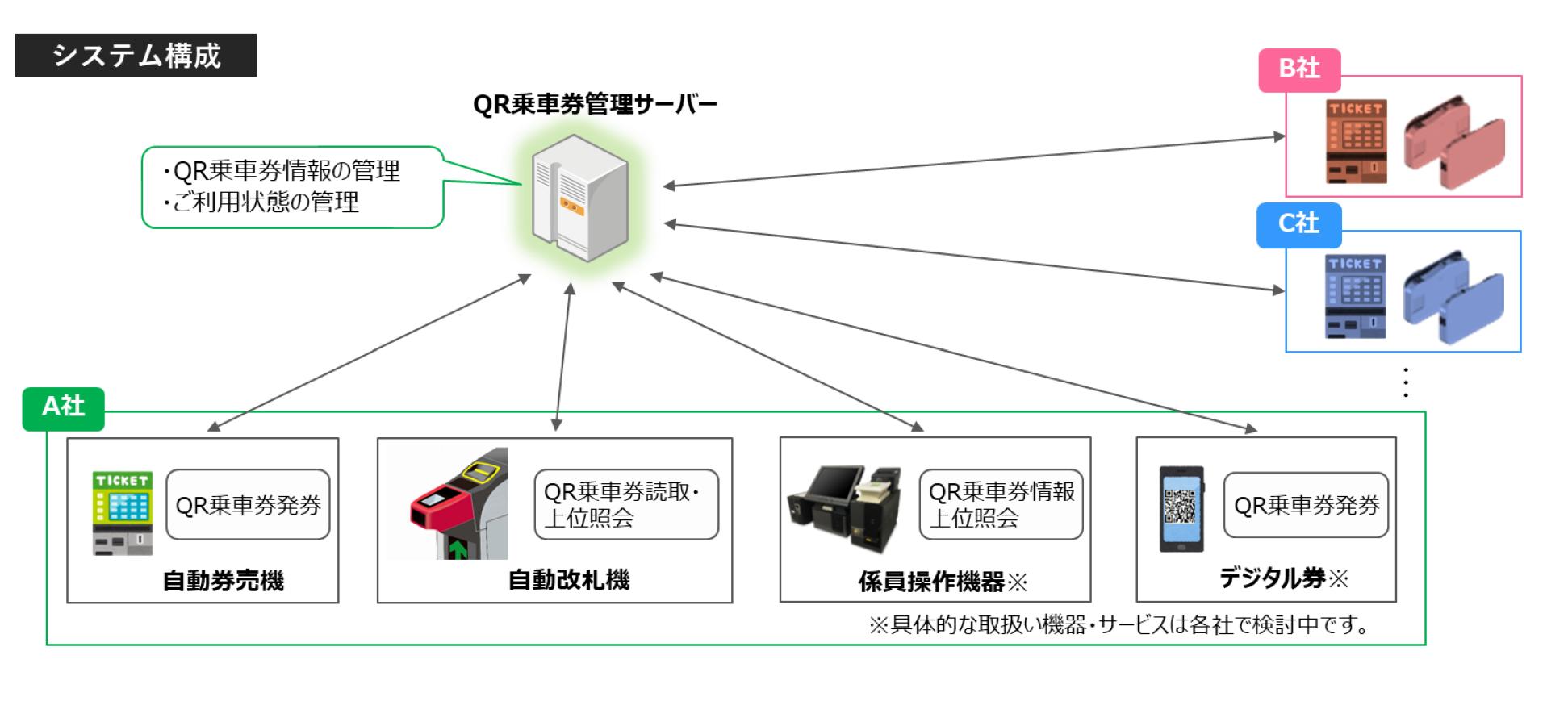 8社が同一のシステムを使用することで、会社間にまたがるQR乗車券の発券が可能。
