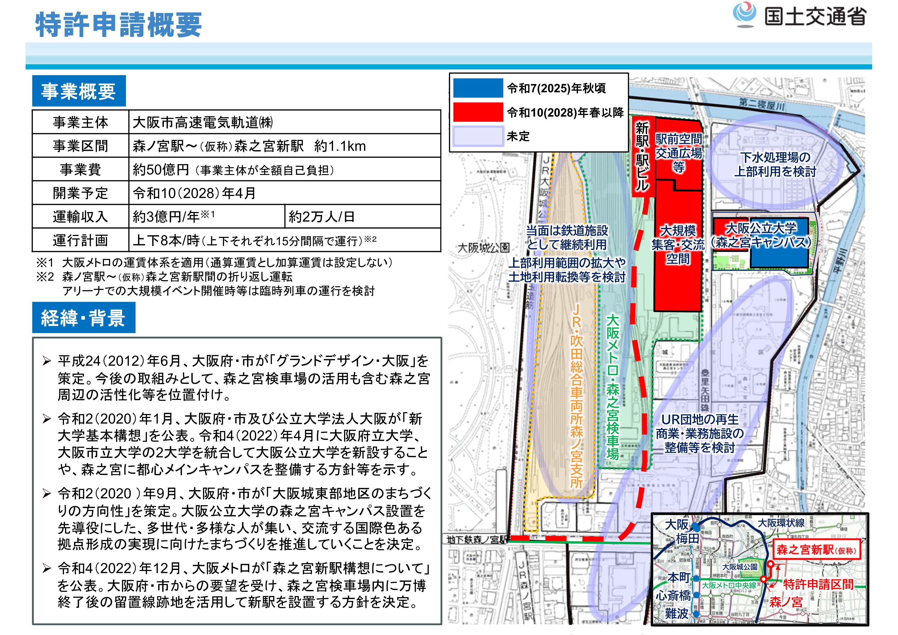 報道発表資料:大阪メトロ・中央線に係る軌道事業の特許について<br>〜大阪メトロの森之宮検車場内に新駅を設置して旅客運輸事業を行うことで、まちづくりが進められている大阪城東部地区までのアクセス利便性が向上します〜 - 国土交通省