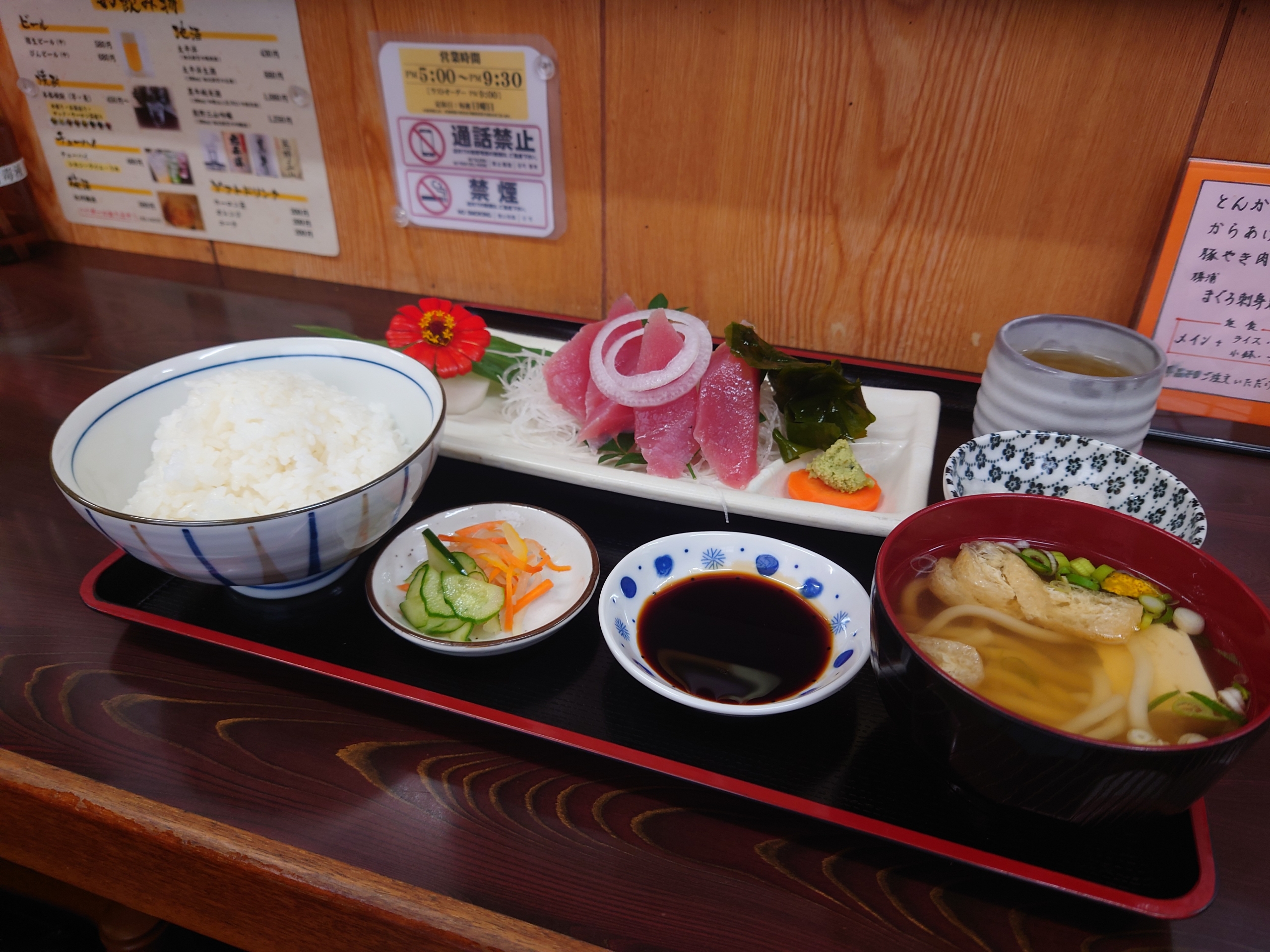 夕食は、ホテル近くの小料理屋でマグロ定食です。