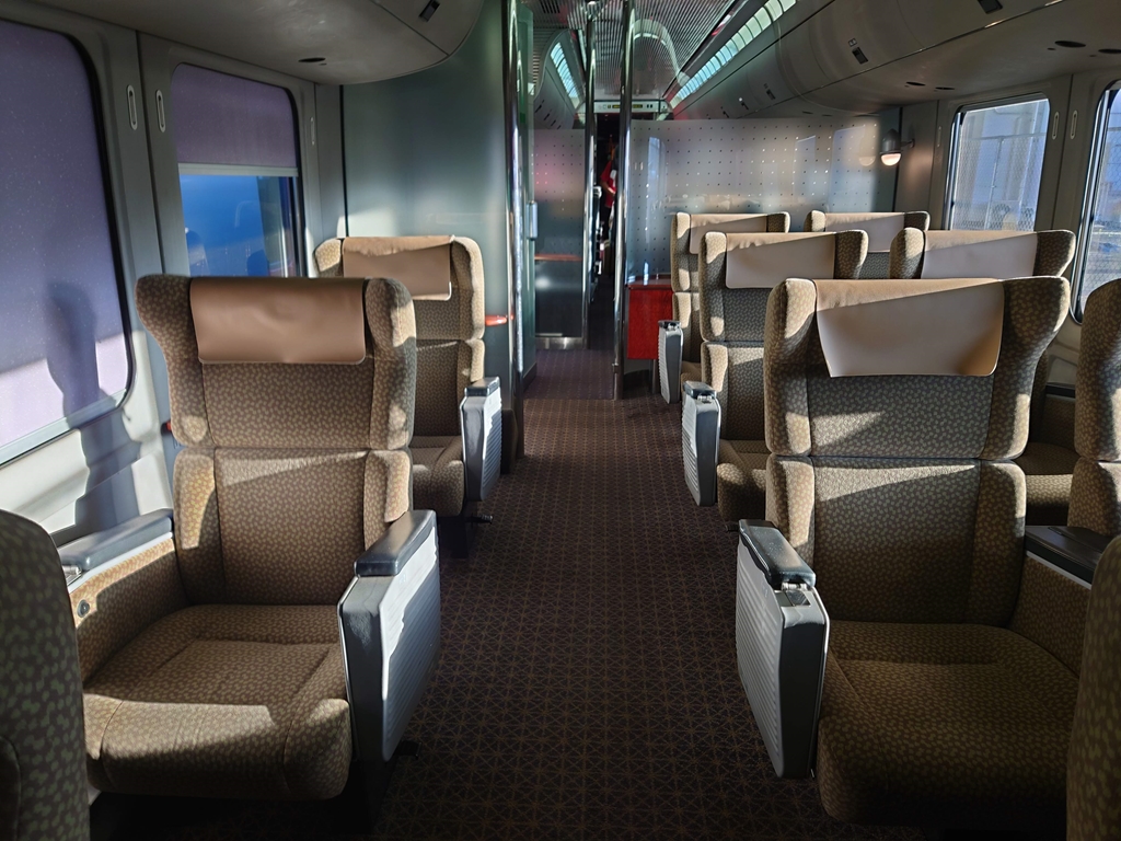 この日は月曜日で、乗車したのは私も含めて3名、そのうちグリーン席に乗車しているのは私だけです。
