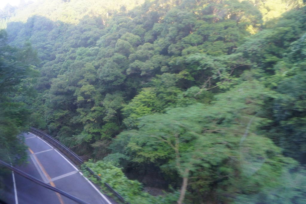 夏の朝日を浴びる宗太郎越えの様子を、車内から記録していきます。