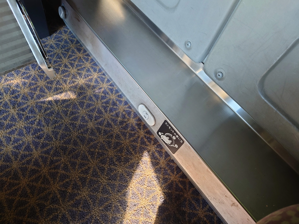 ▲ちなみに電源コンセントは、通路側の足元に備え付けられています。
